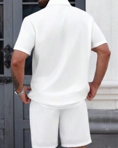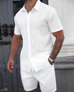 Camisa casual de hombre de verano, unicolor, con contraste de encaje