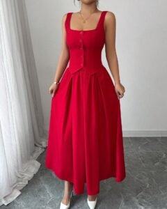 Conjunto de chaleco sin mangas de cuello cuadrado y falda plisada acampanada