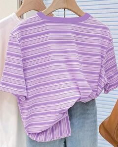 Camiseta gráfica de mujer de manga corta con estampado de corazón a rayas