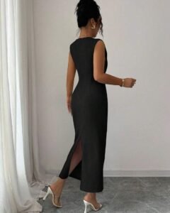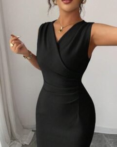 Vestido de unicolor de corte ajustado con cuello en V sin mangas