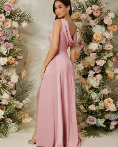 Vestido con cuello drapeado y abertura en el muslo