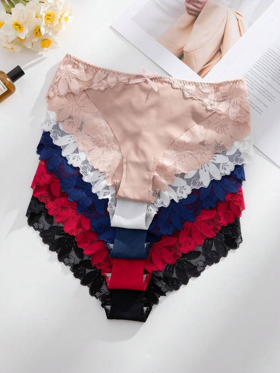 3 Piezas Lencería De Encaje De Tanga Triangular Para Mujer