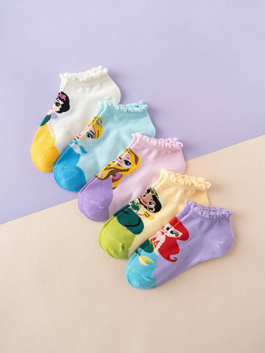 5 pares de calcetines para niñas con diseño de princesa