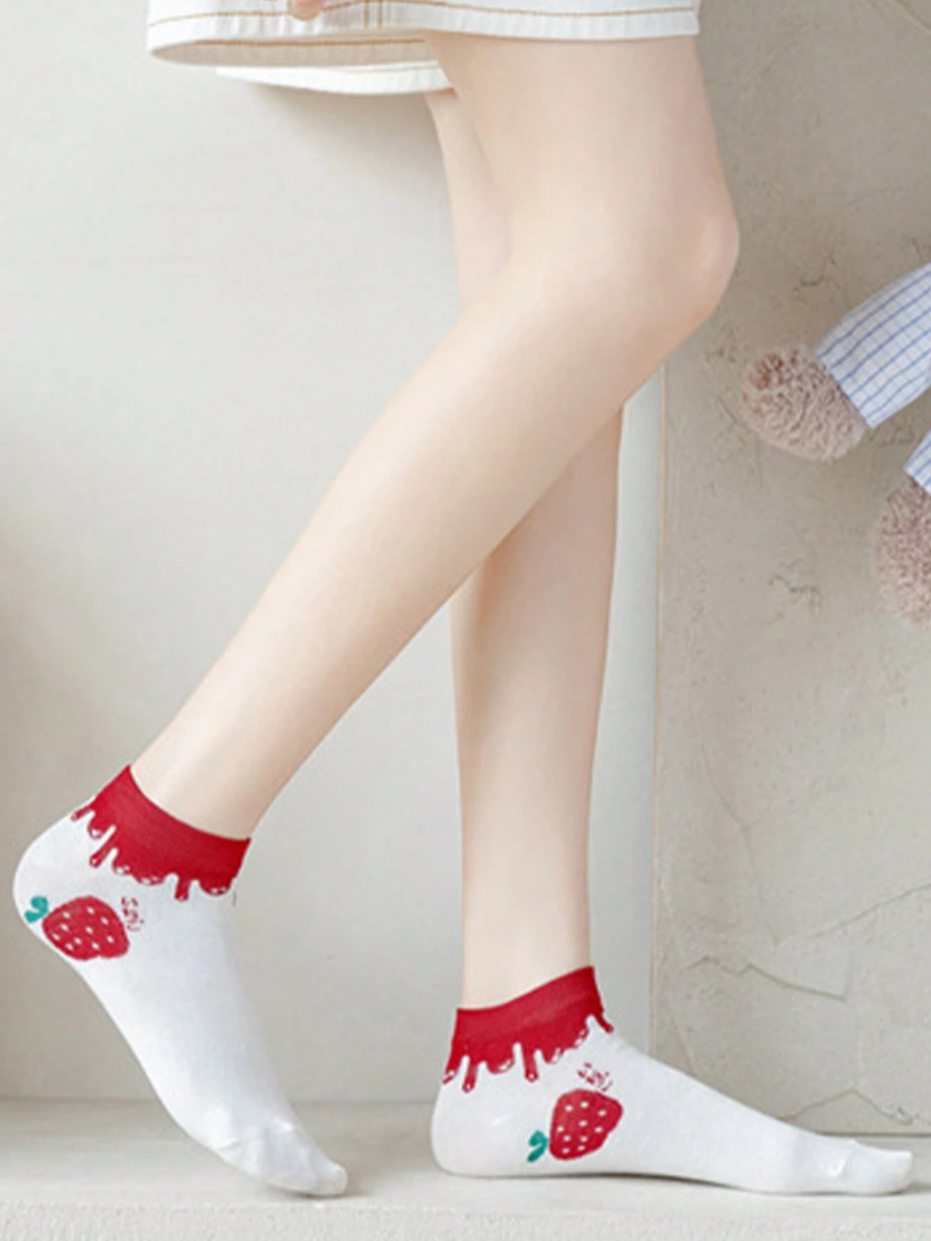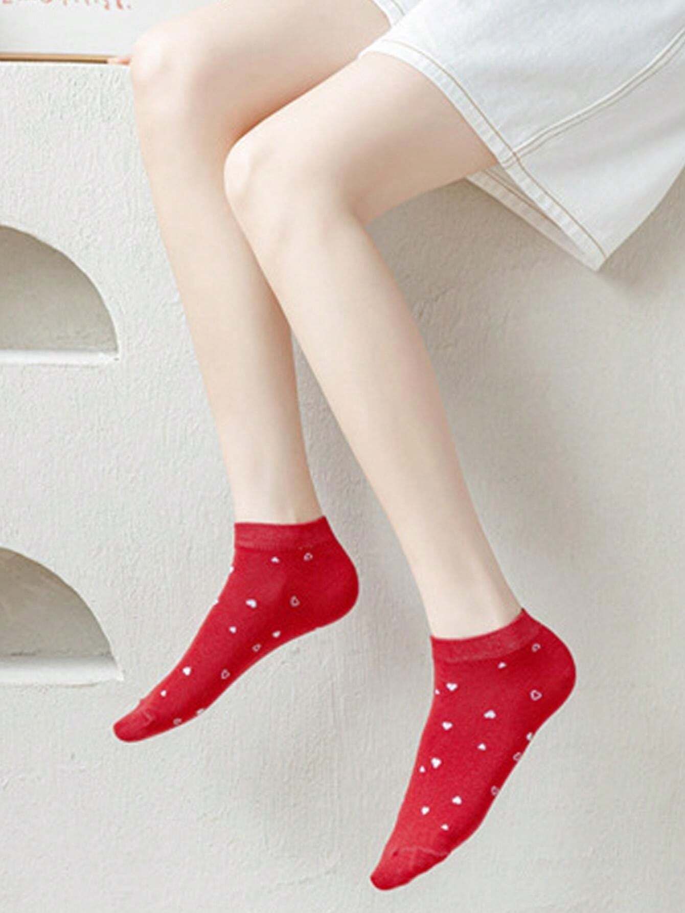 5 pares de calcetines tobilleros para mujer con estampado de corazones y fresas