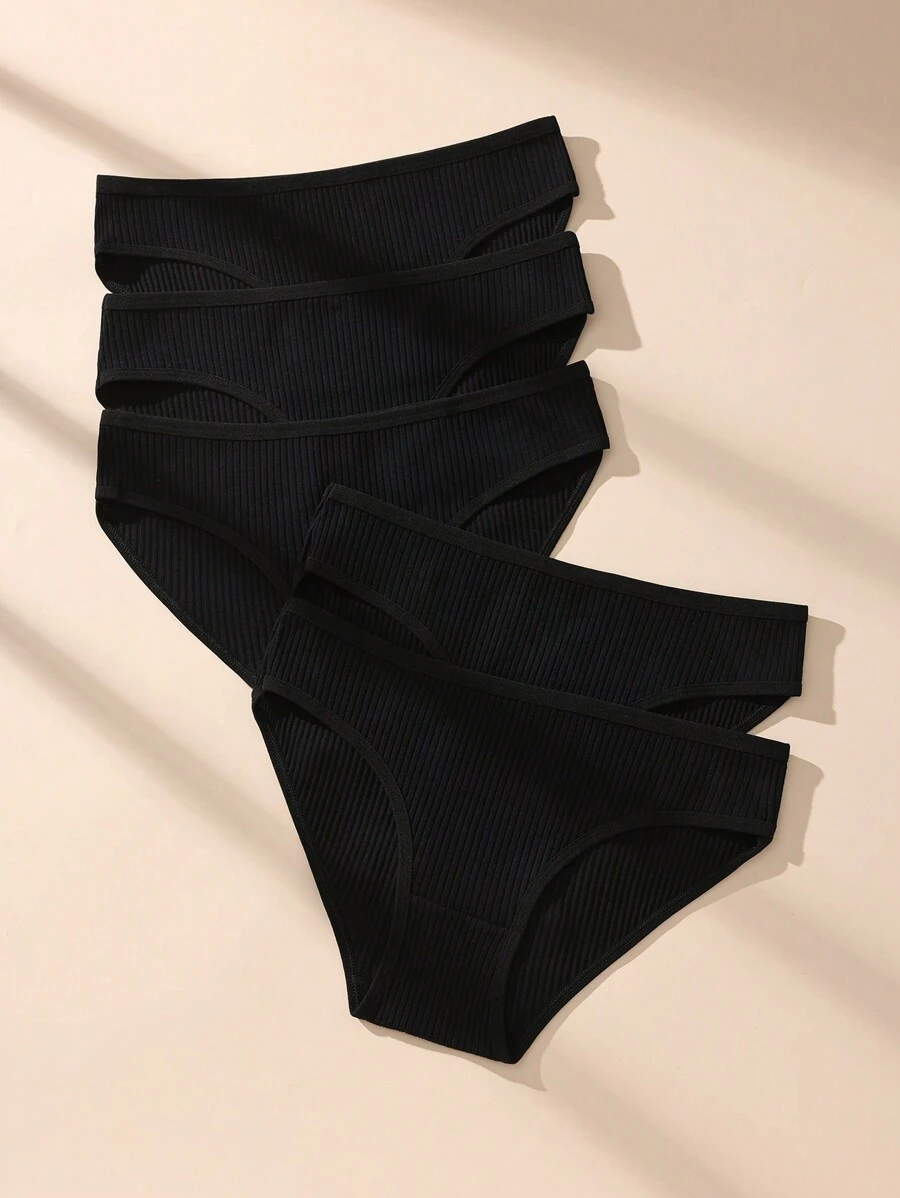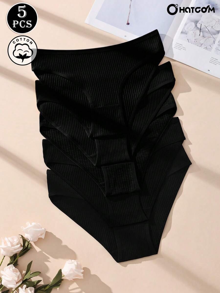 5 piezas de bragas negras sólidas y simples de triángulo suave y cómoda
