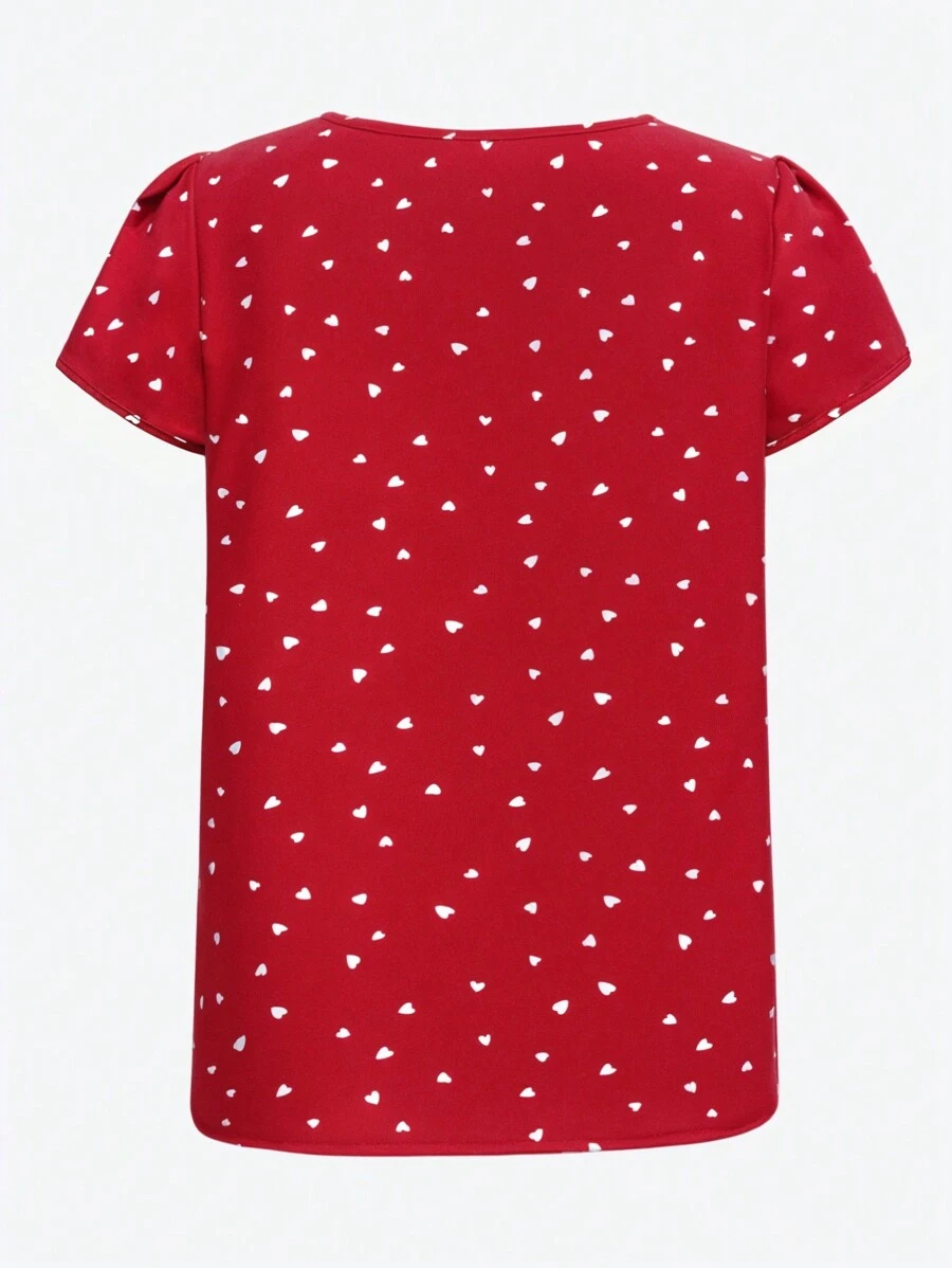Blusa casual manga corta con estampado de corazones