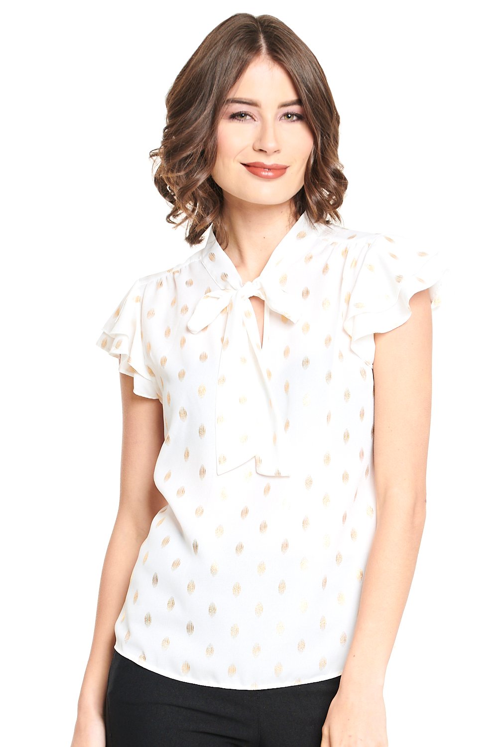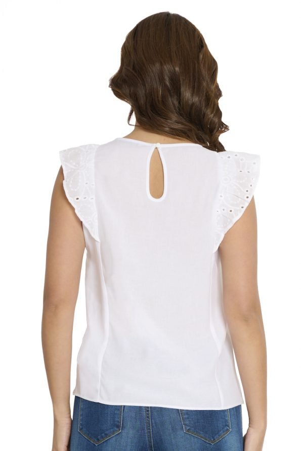 Blusa escote redondo con detalle olan ojal en hombro y abertura de gota posterior