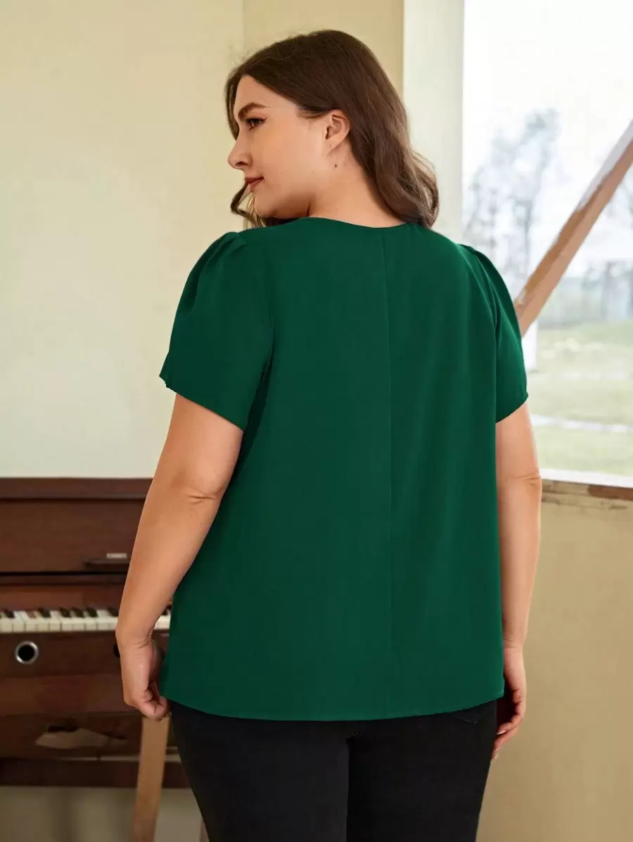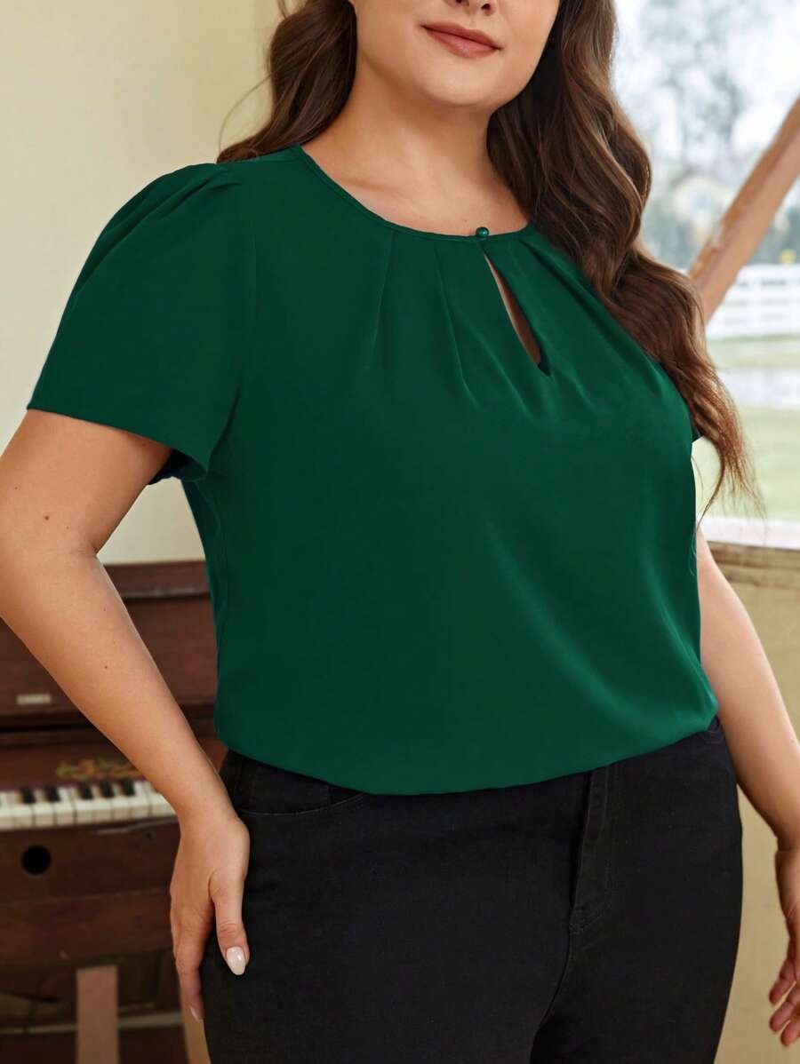 Blusa con cuello de ojo de cerradura, mangas abullonadas y frente plisado