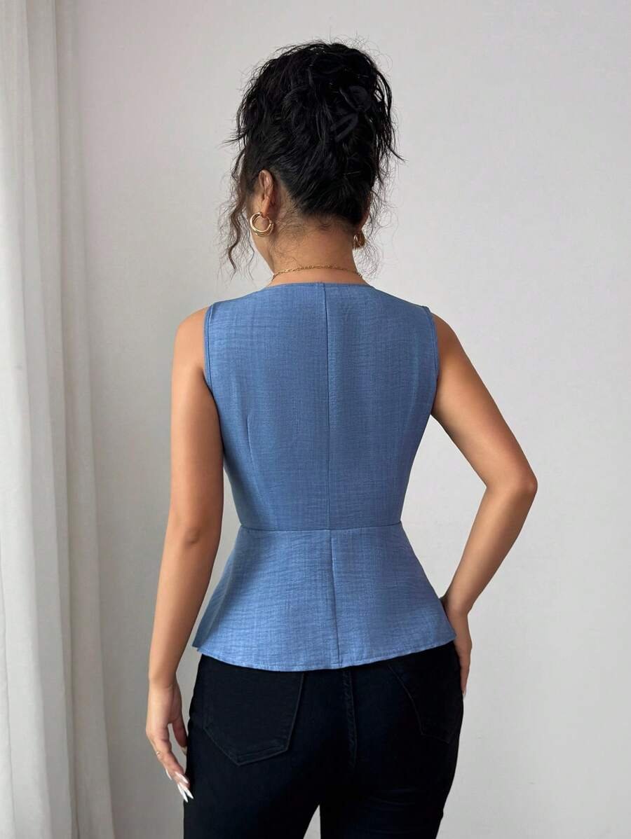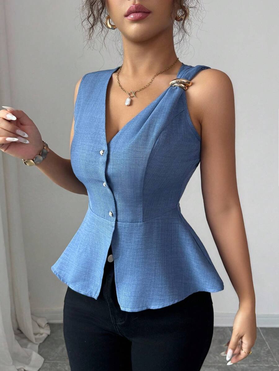 Blusa con diseño de hebilla de metal minimalista y escote en V