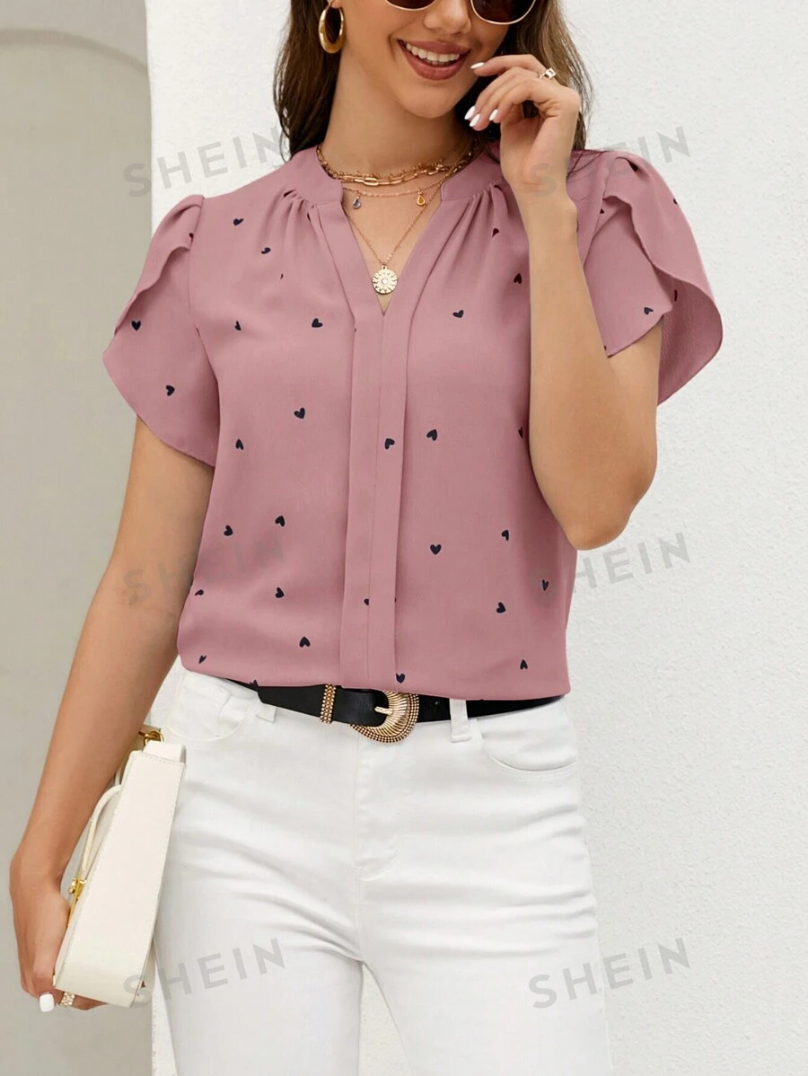 Blusa con estampado de corazón manga tulipán popover