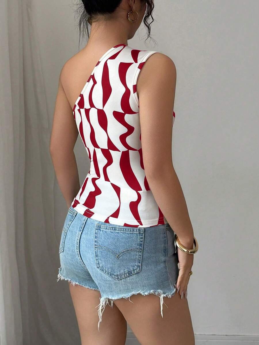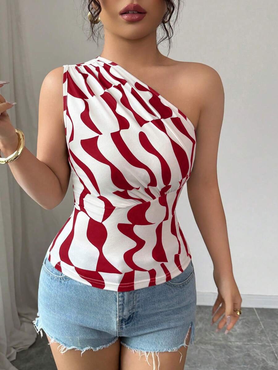 Blusa con estampado floral de cuello con cordón de manga amplia