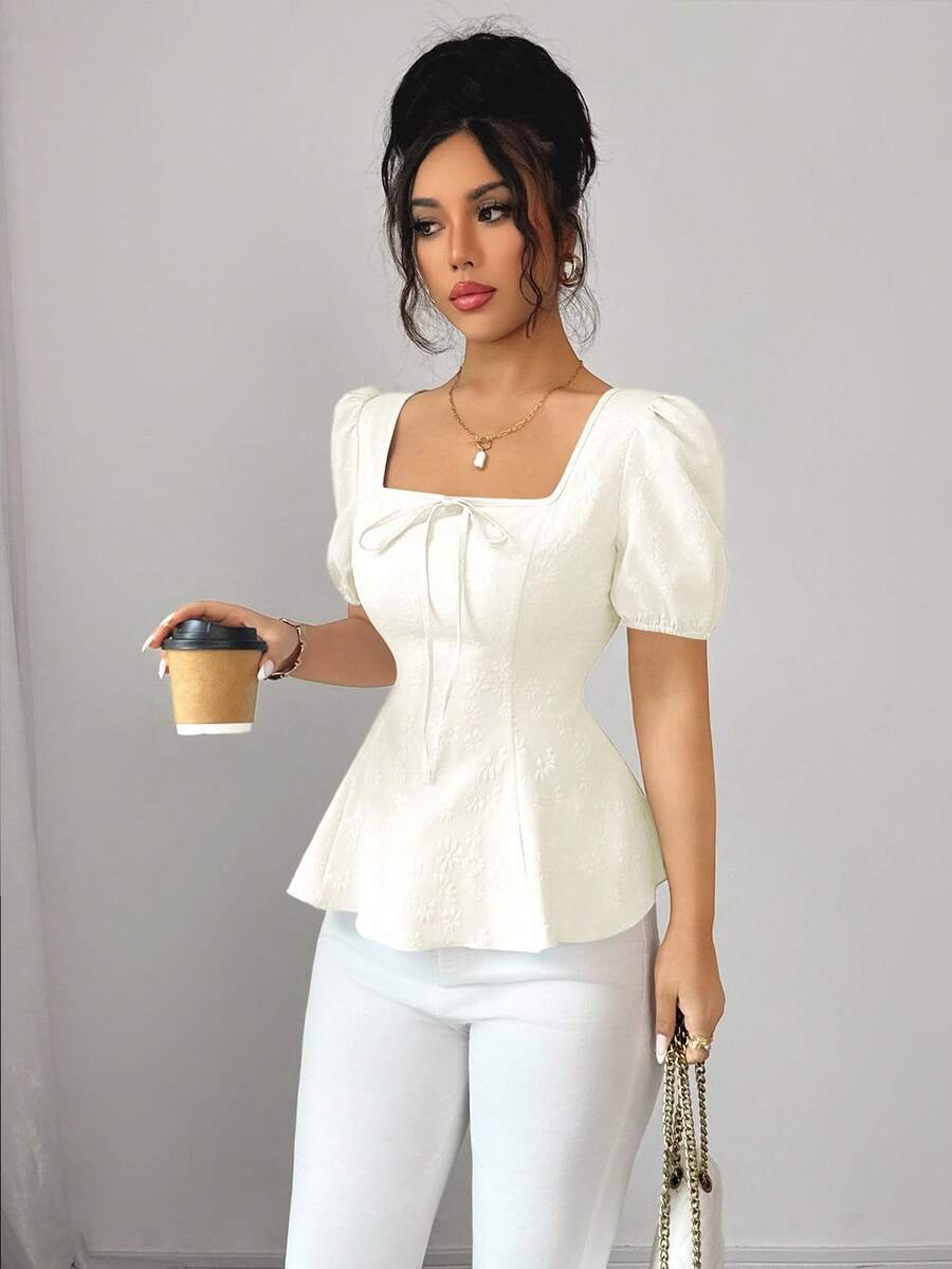 Blusa de diseño asimétrico con cuello redondo y manga corta de murciélago