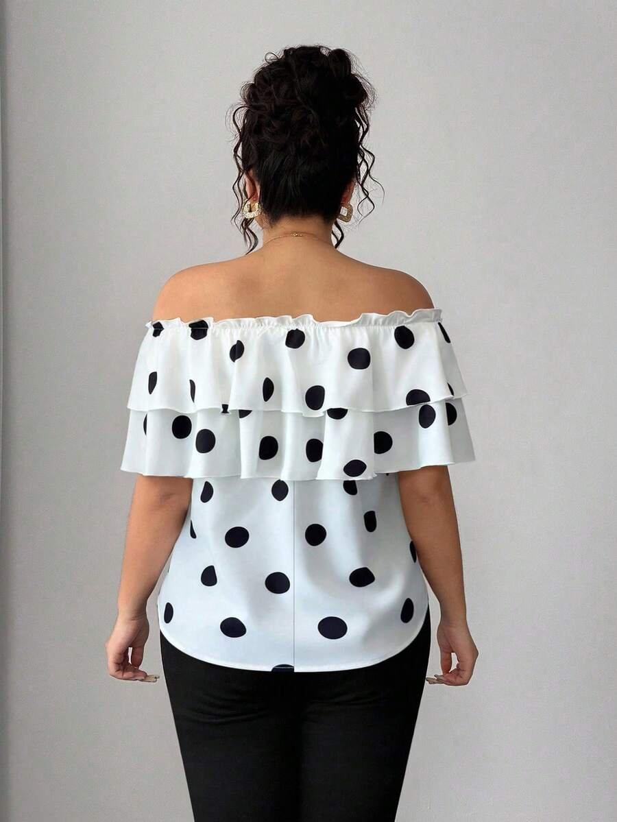 Blusa de hombros descubiertos con volantes en capas y estampado