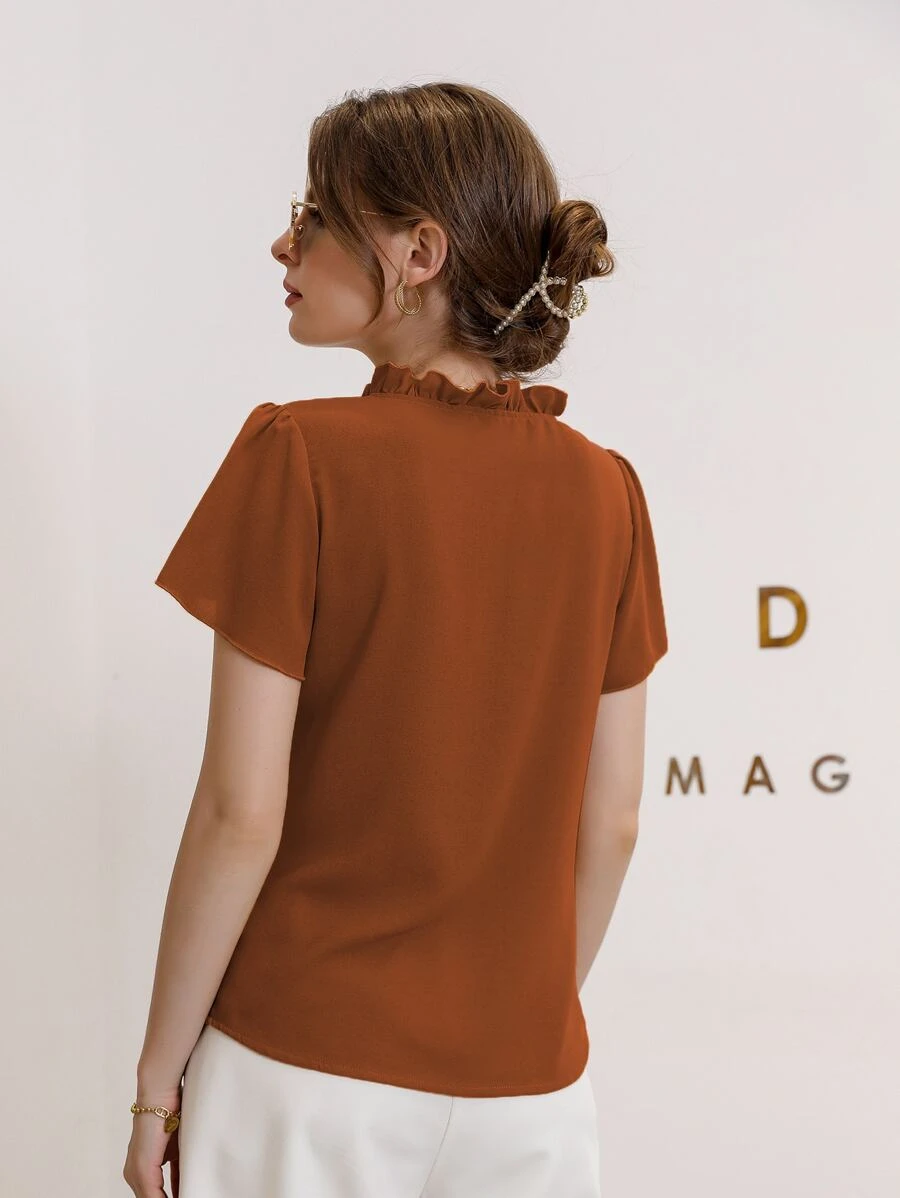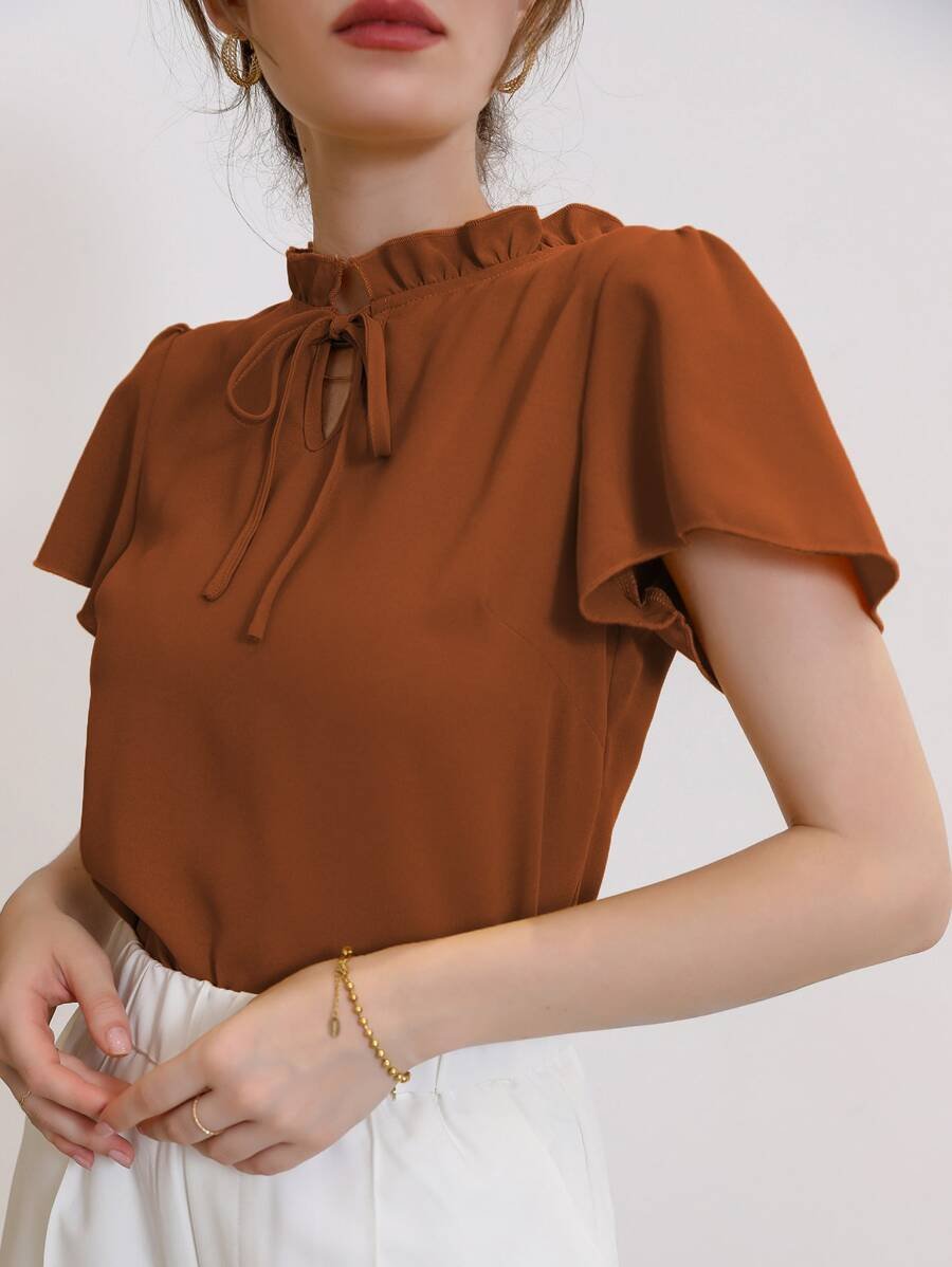 Blusa con estampado floral de cuello con cordón de manga amplia