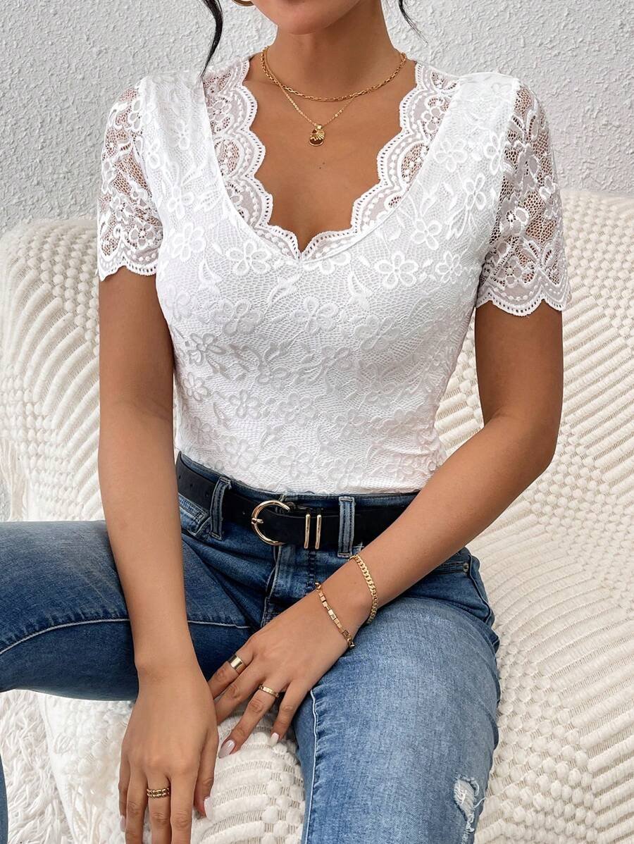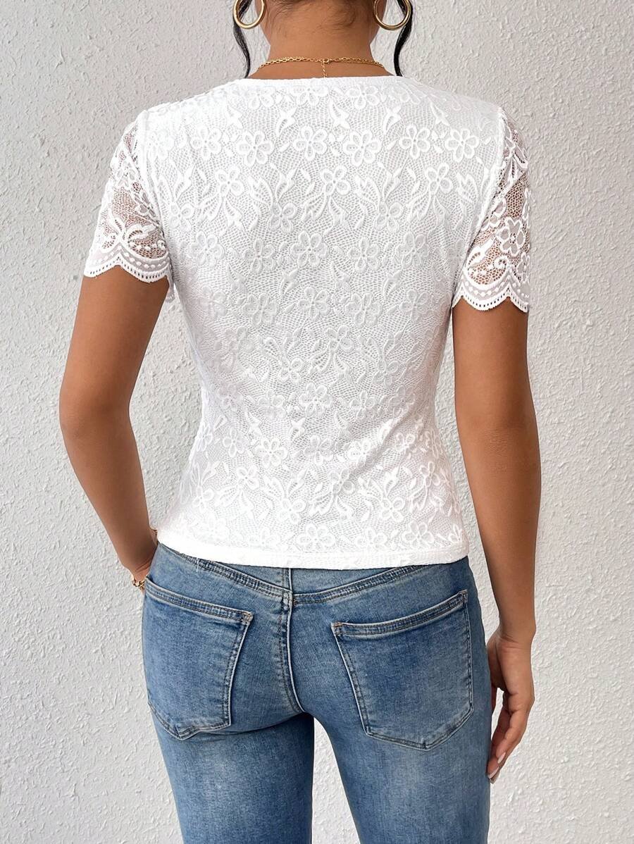 Blusa De Manga Corta De Encaje Para Mujer Con Parche