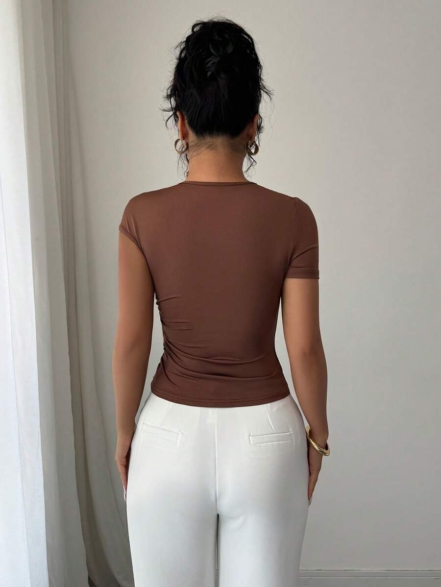 Blusa de manga corta para mujer con cuello asimétrico
