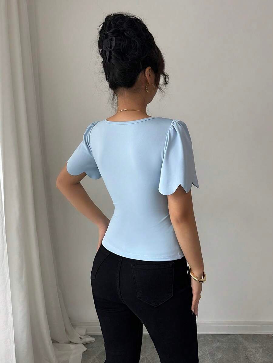 Blusa de mangas abullonadas con ribete unicolor