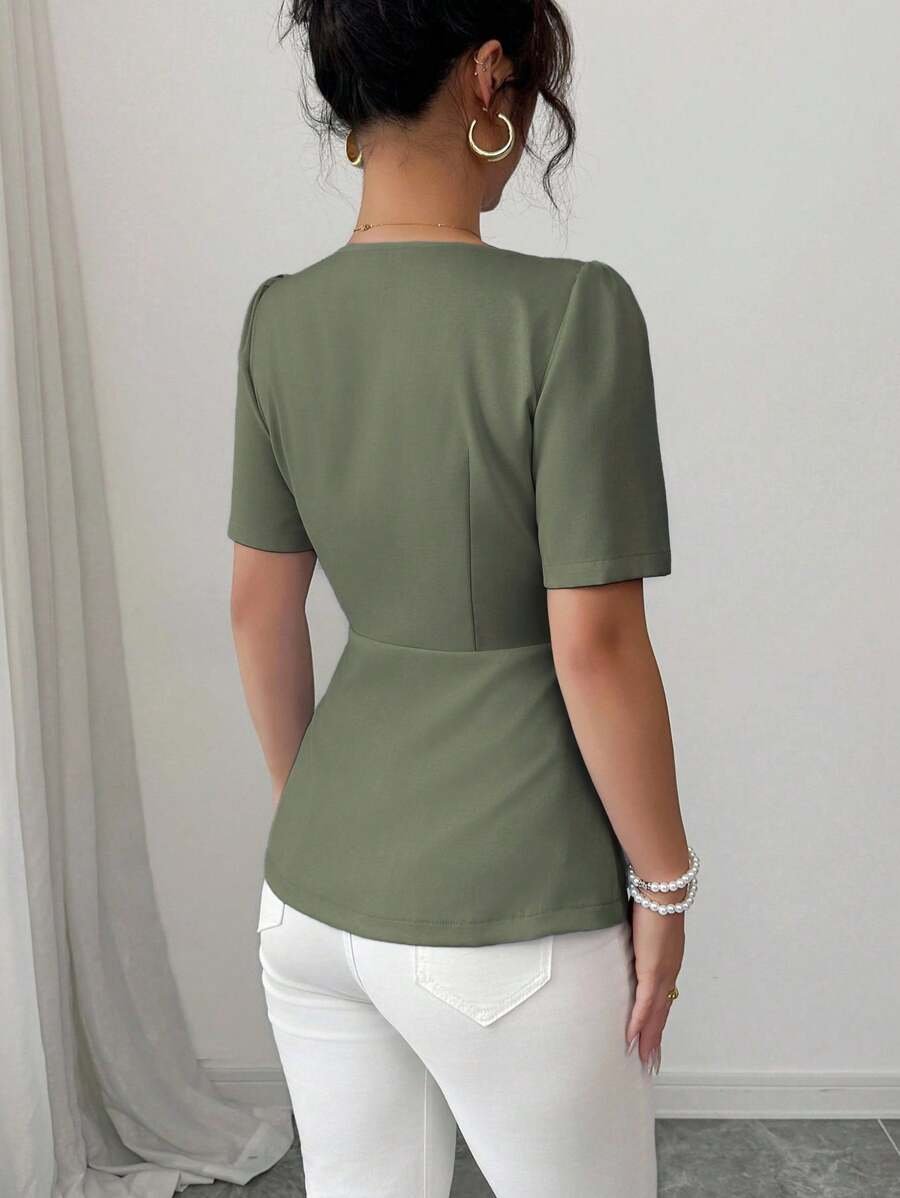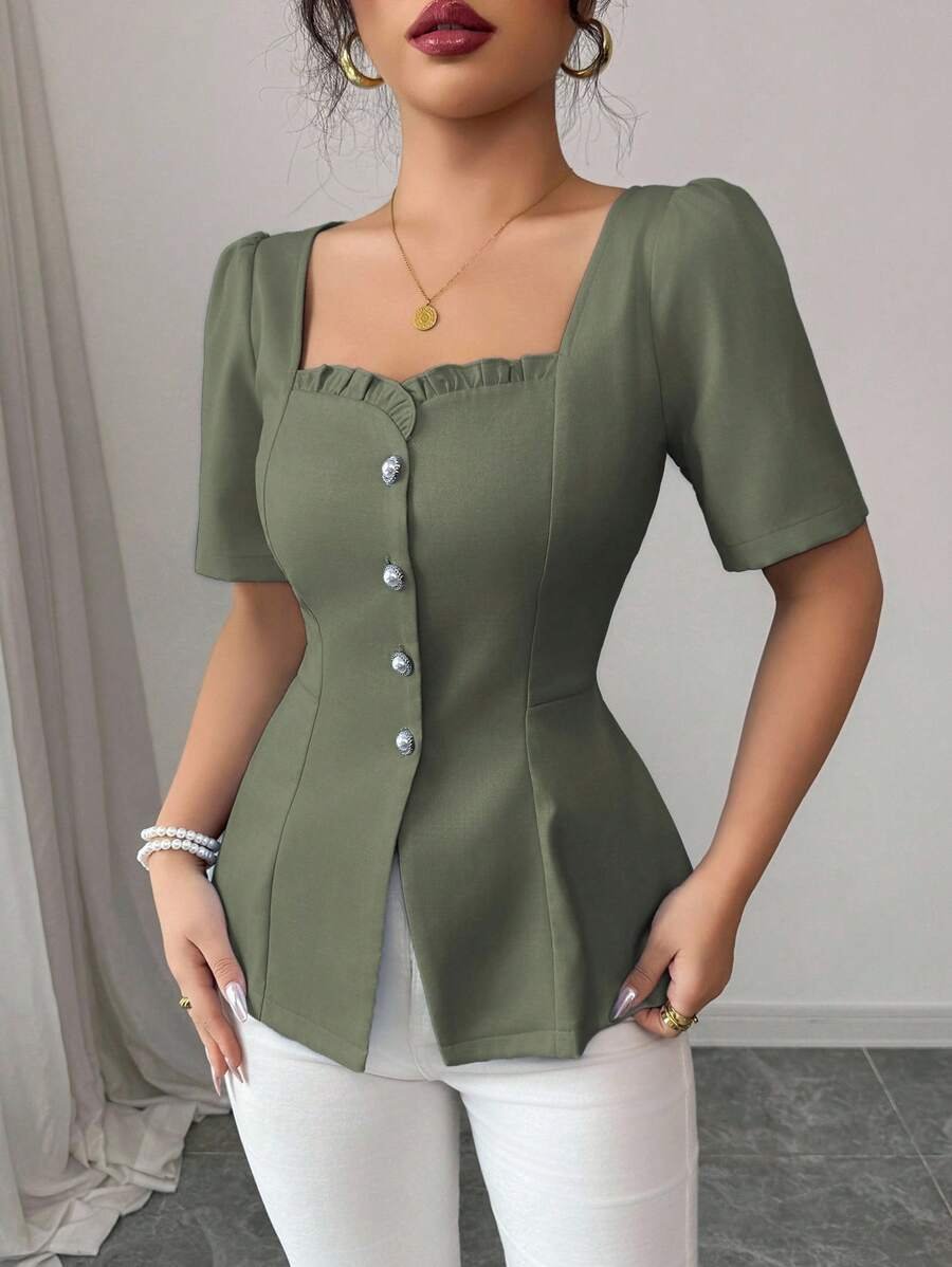 Blusa de mujer de estilo francés elegante de unicolor y con cuello cuadrado