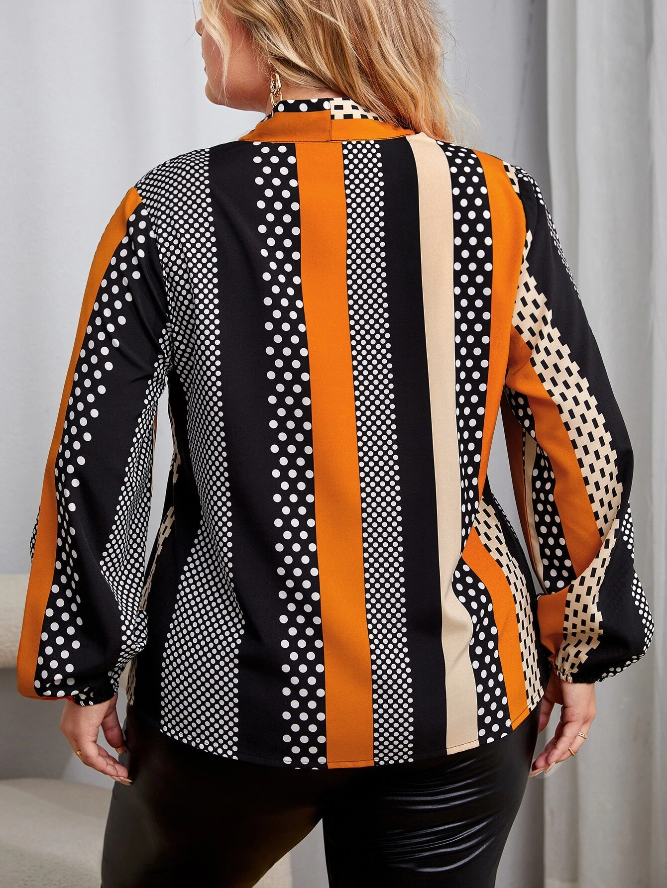 Blusa de rayas & con estampado de lunares de cuello con cordón