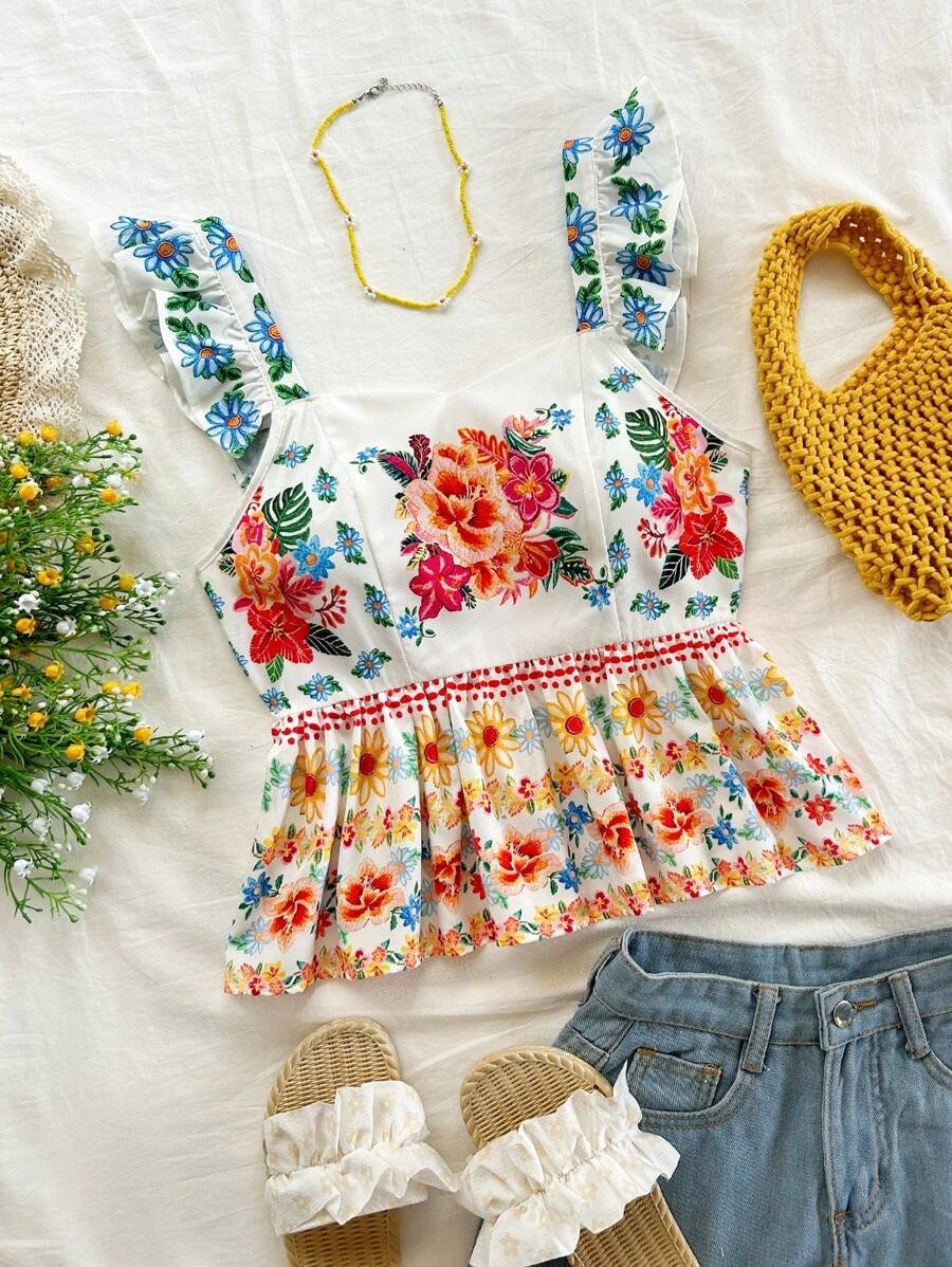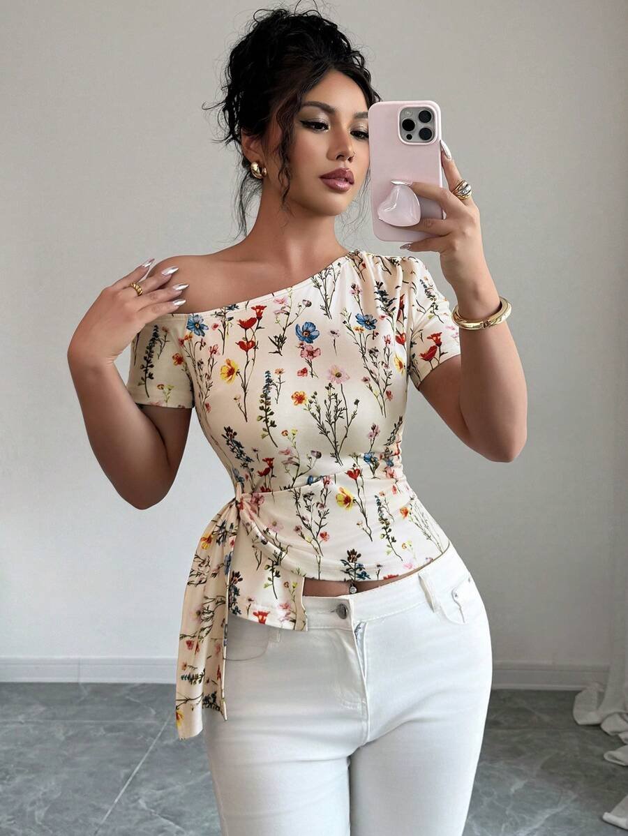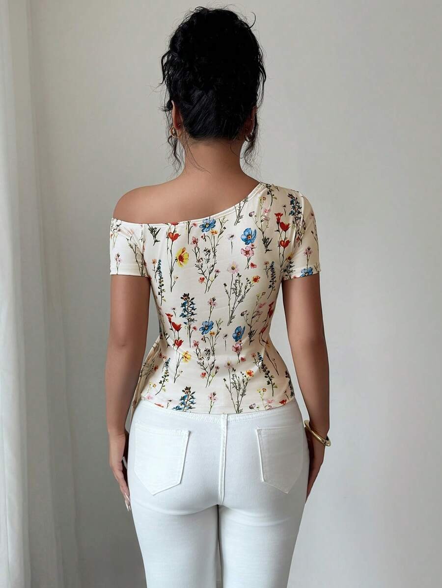 Blusa de una sola manga ajustada y con estampado floral elegante