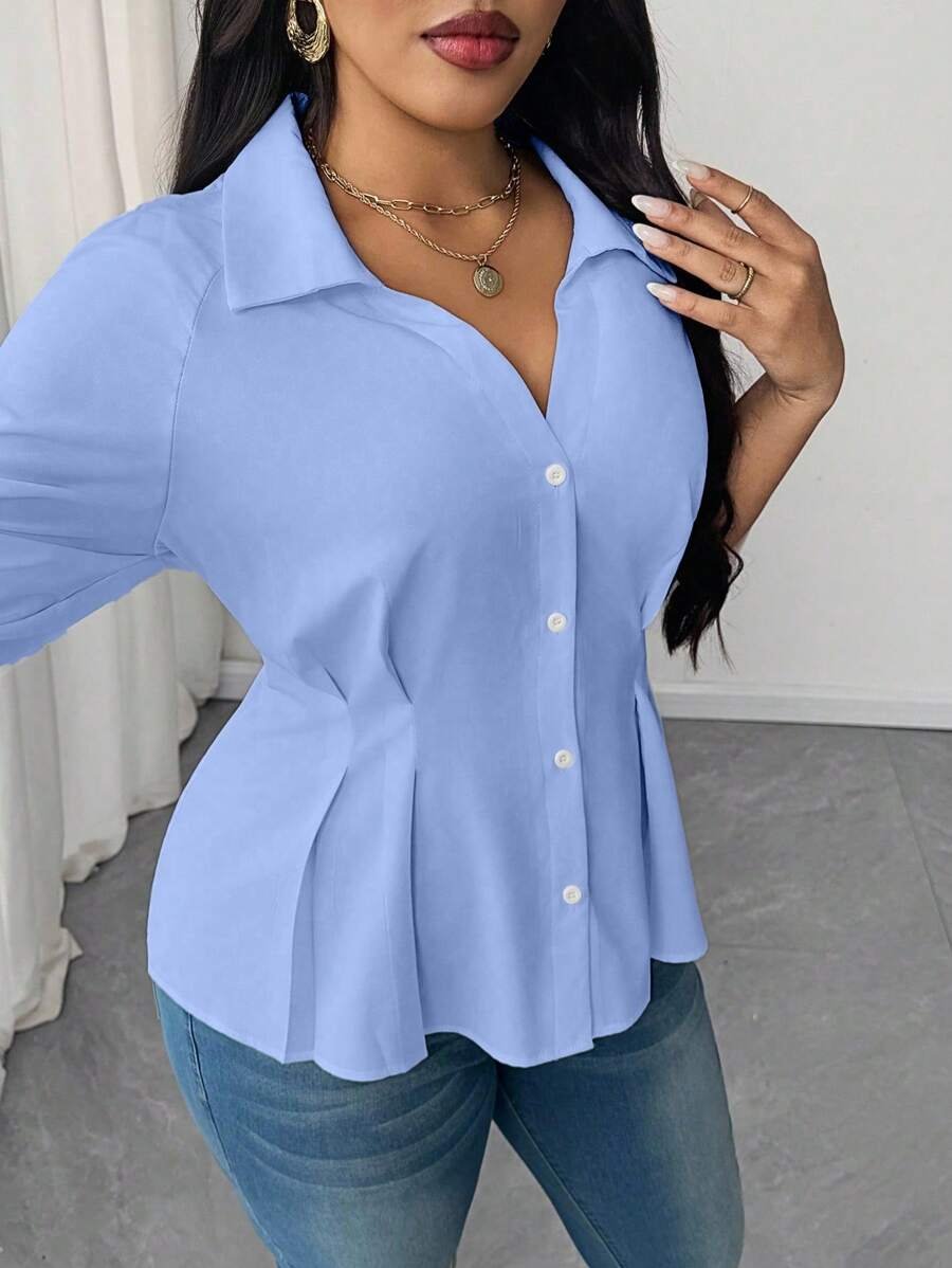 Blusa elegante con cuello y cintura fruncida de unicolor