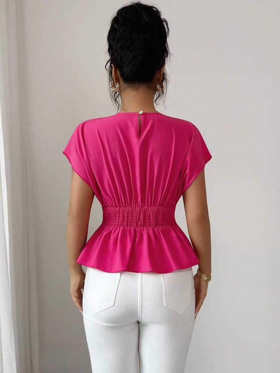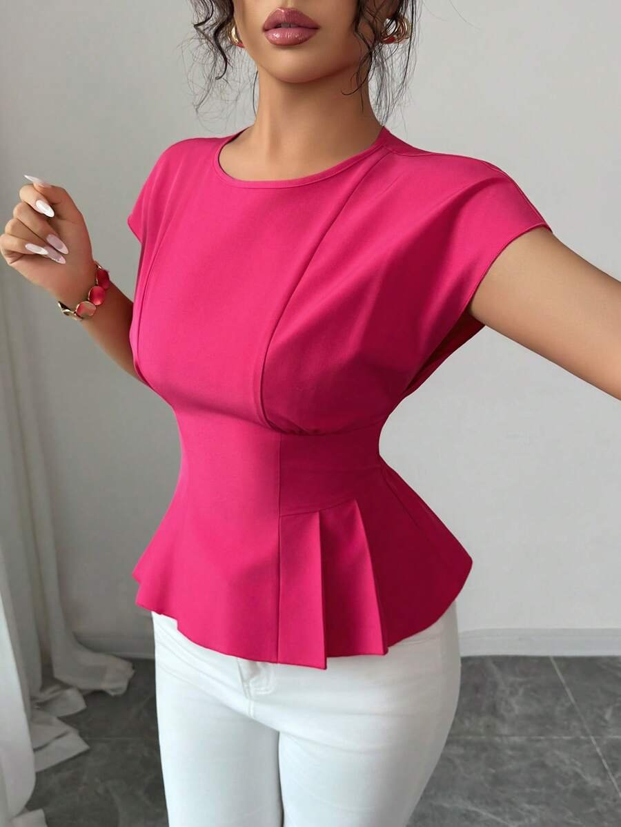 Blusa elegante de cuello redondo sin mangas y con cintura recogida