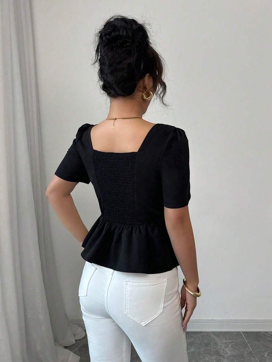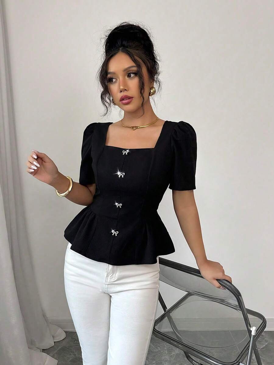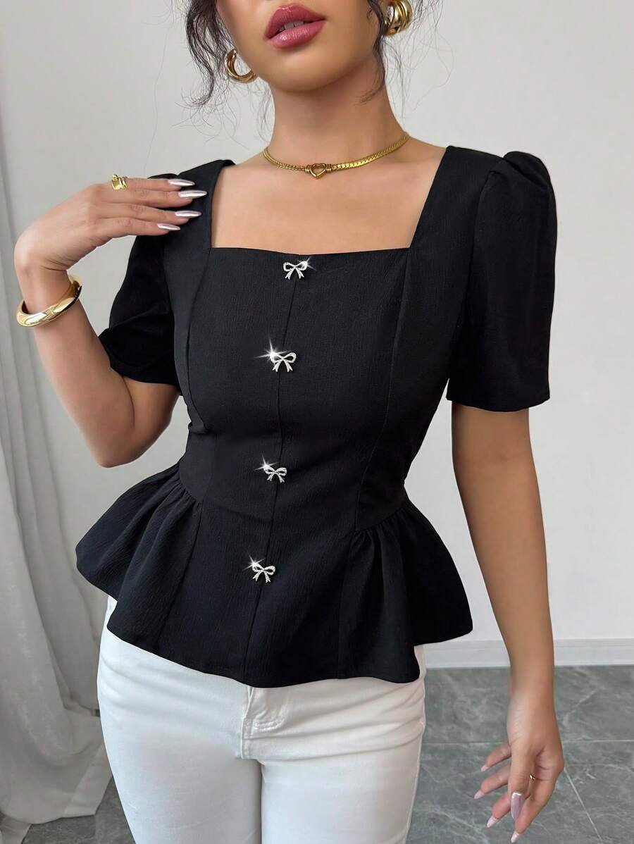 Blusa elegante de princesa con cuello cuadrado tejida