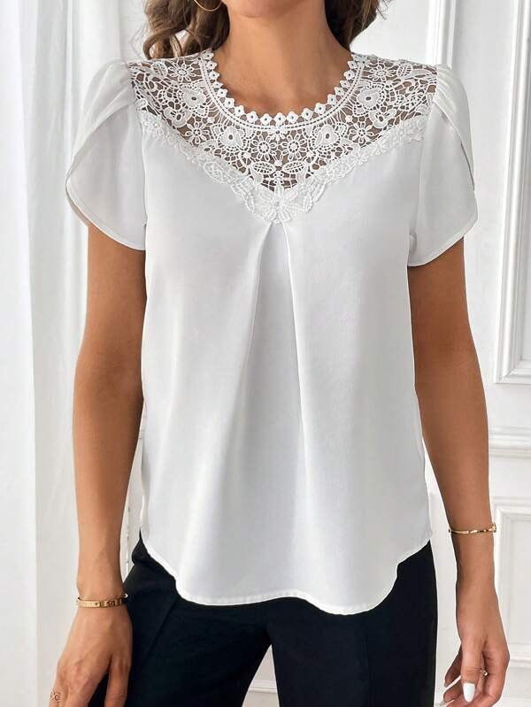 Blusa panel con encaje manga tulipán