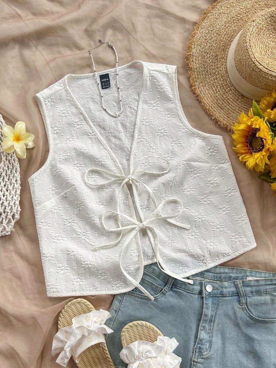 Top corto con cordón lateral floral de margarita