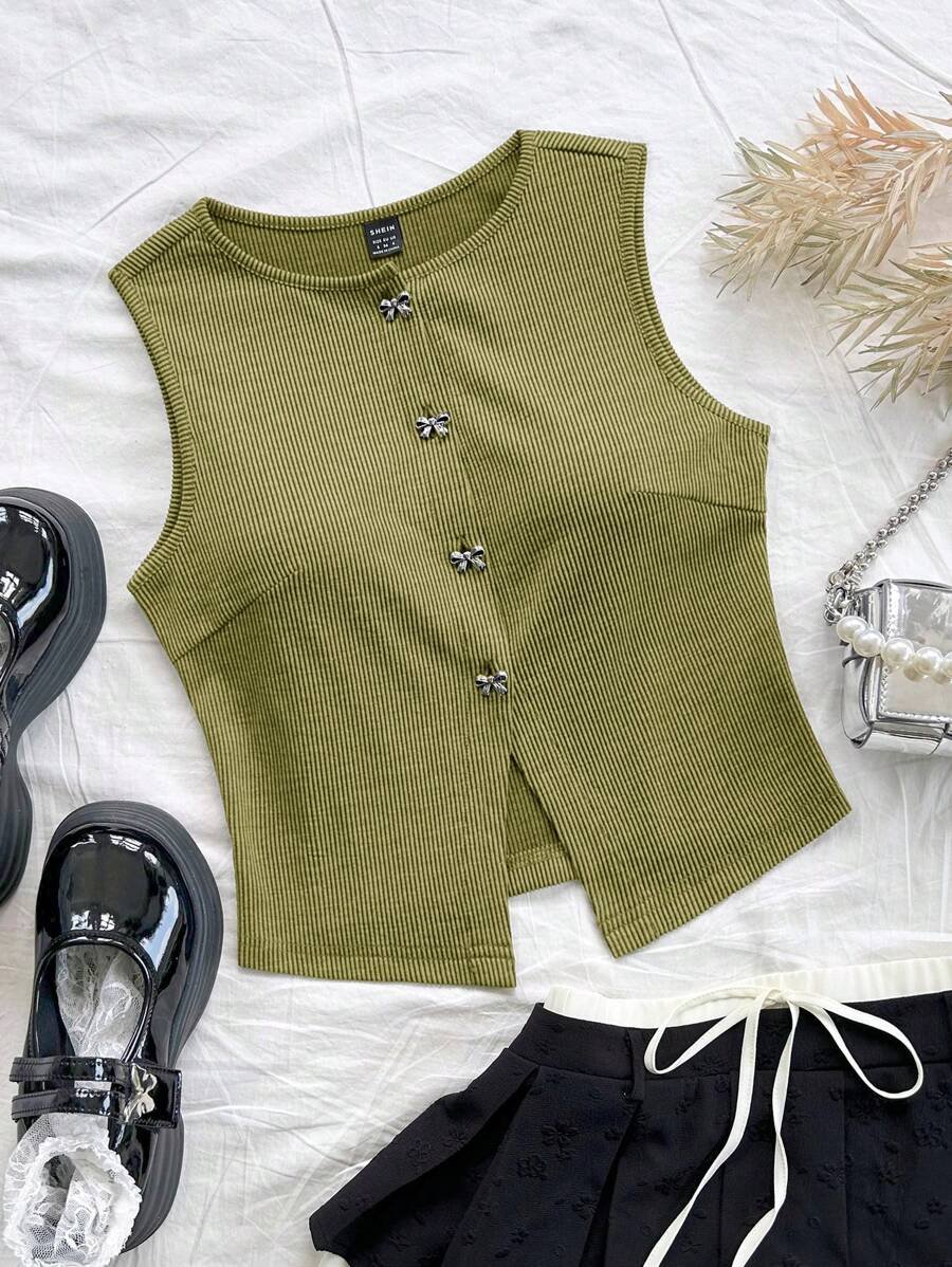 Blusa sin espalda con cuello en V y textura casual