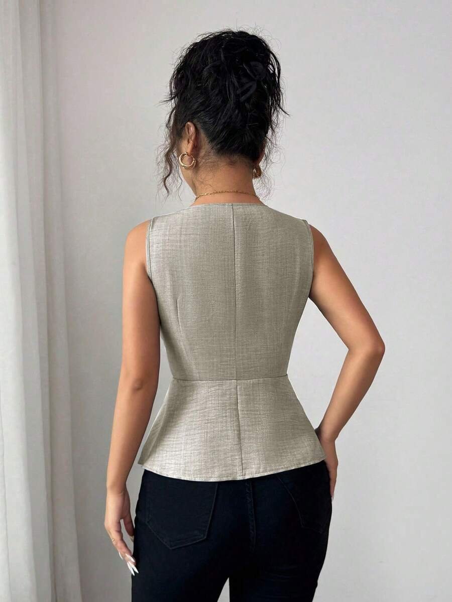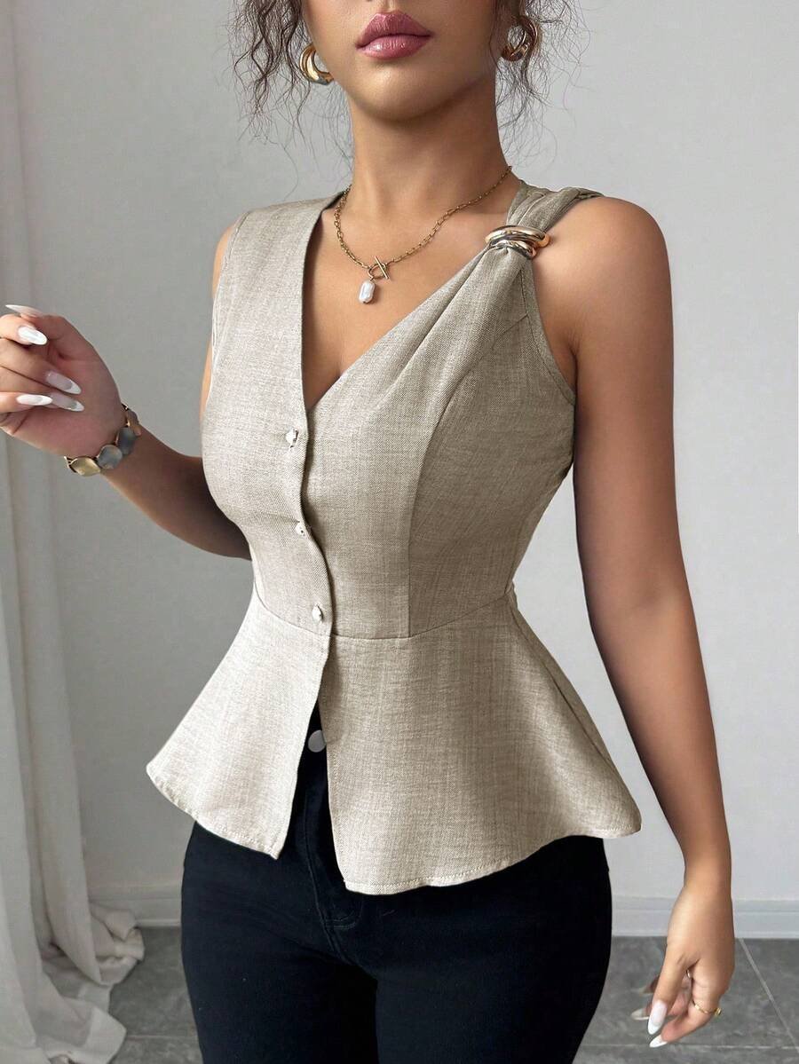 Blusa sin mangas con cuello en V y diseño de hebilla metálica