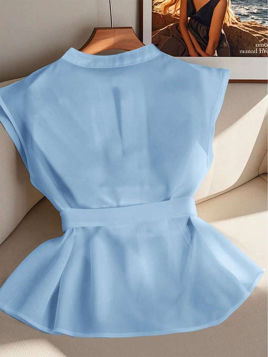 Blusa sin mangas de unicolor y elegante