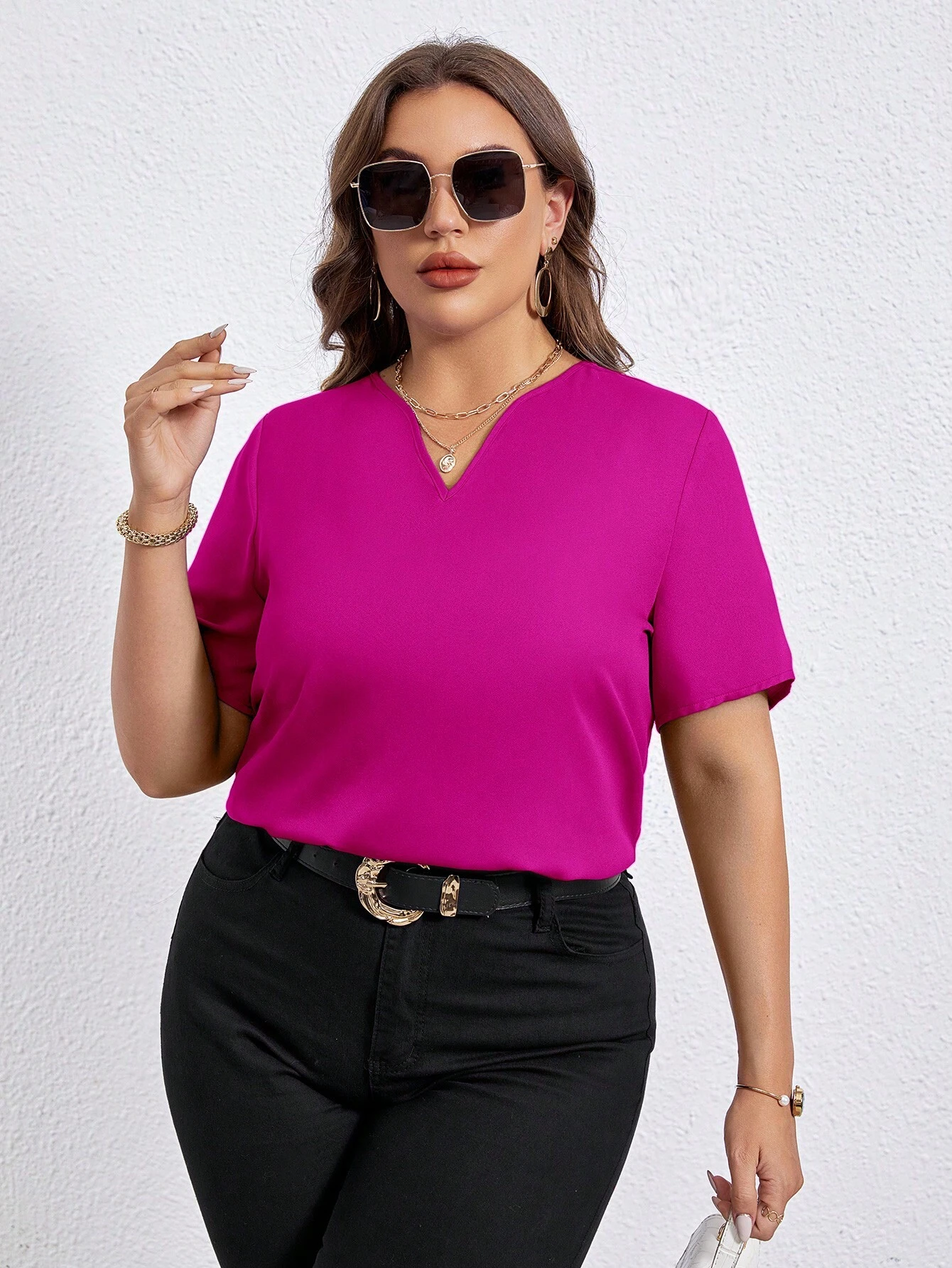 Blusa unicolor de cuello de muesca