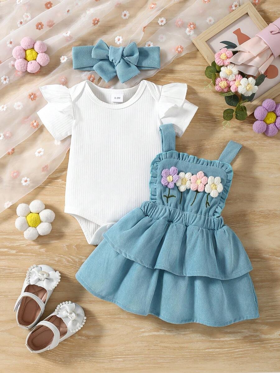 Bebé Vestido con estampado de letra ribete en forma de lechuga