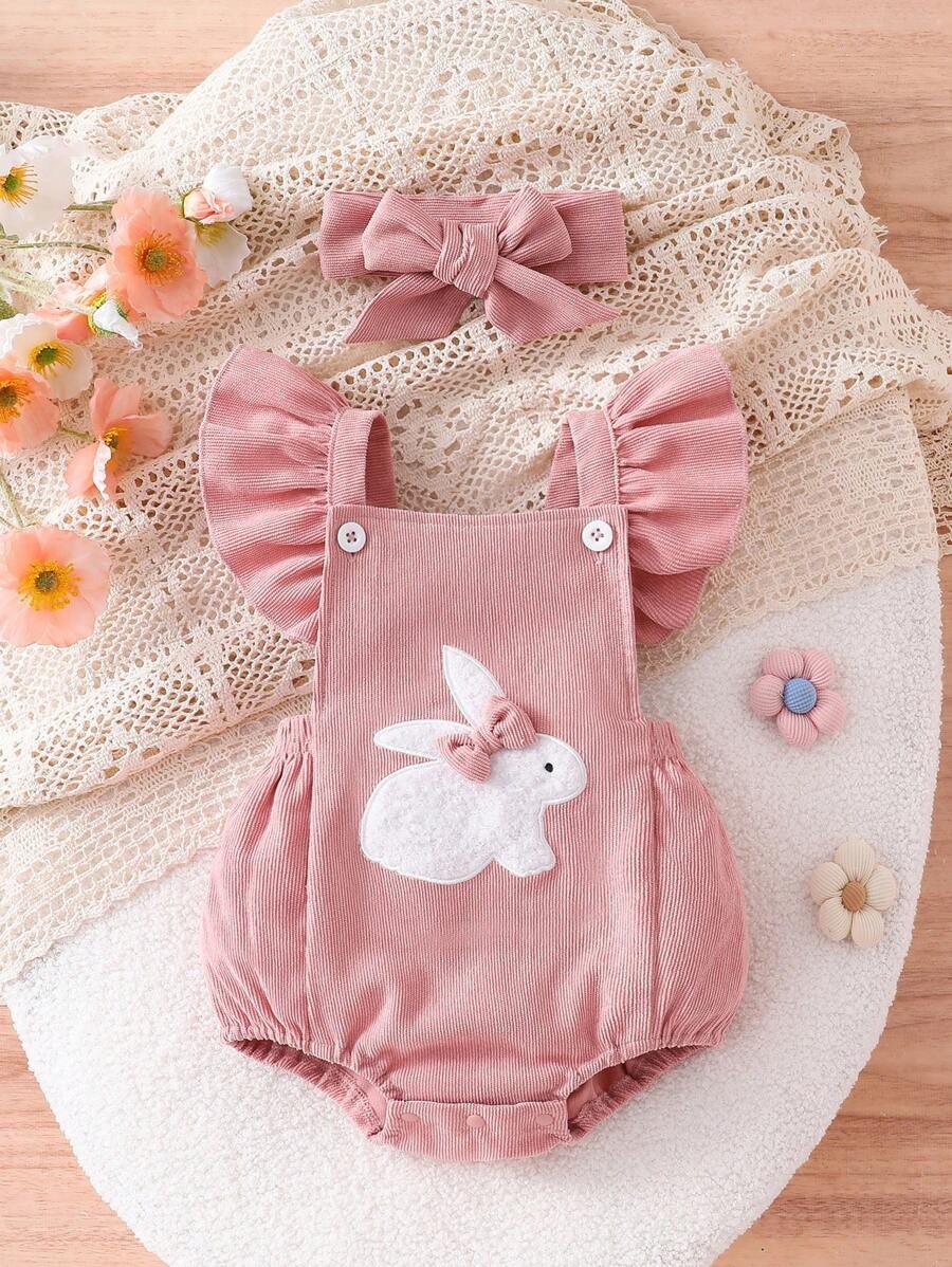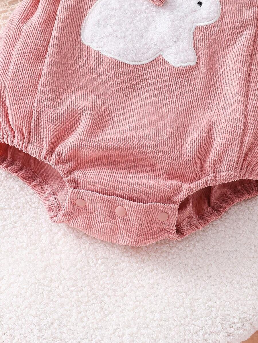 Body de bebé con bordado de conejito lindo y decoración de pompones