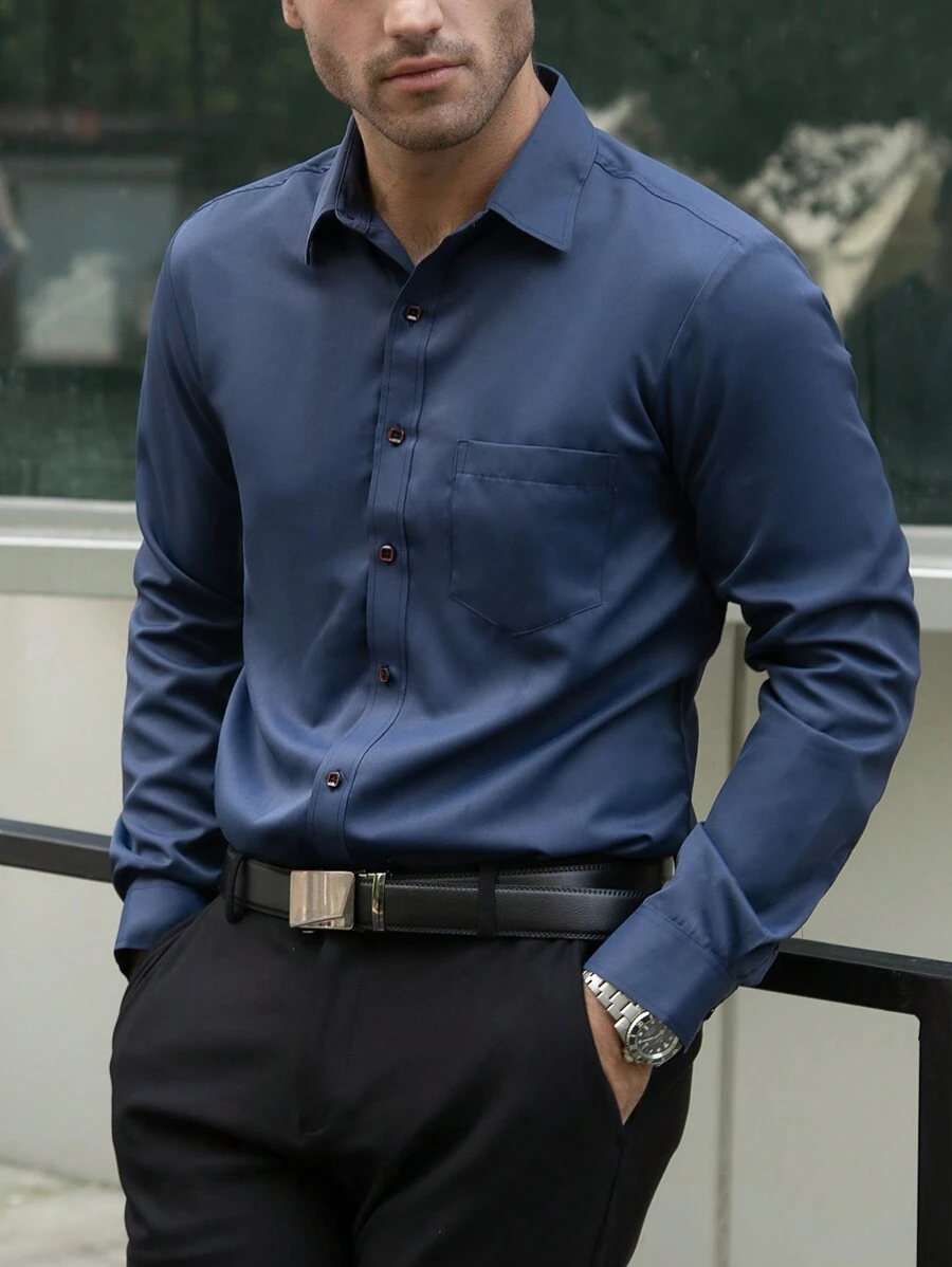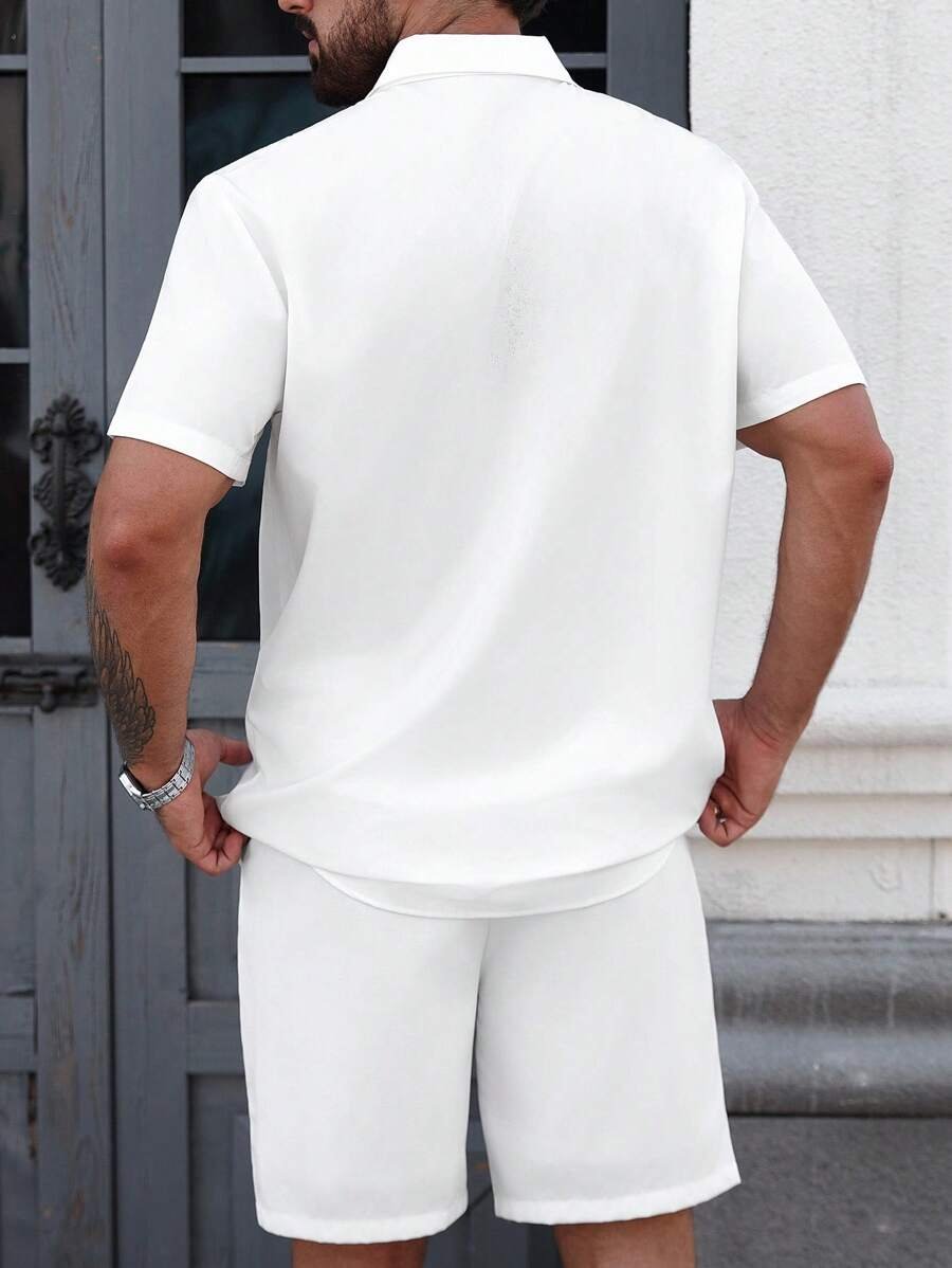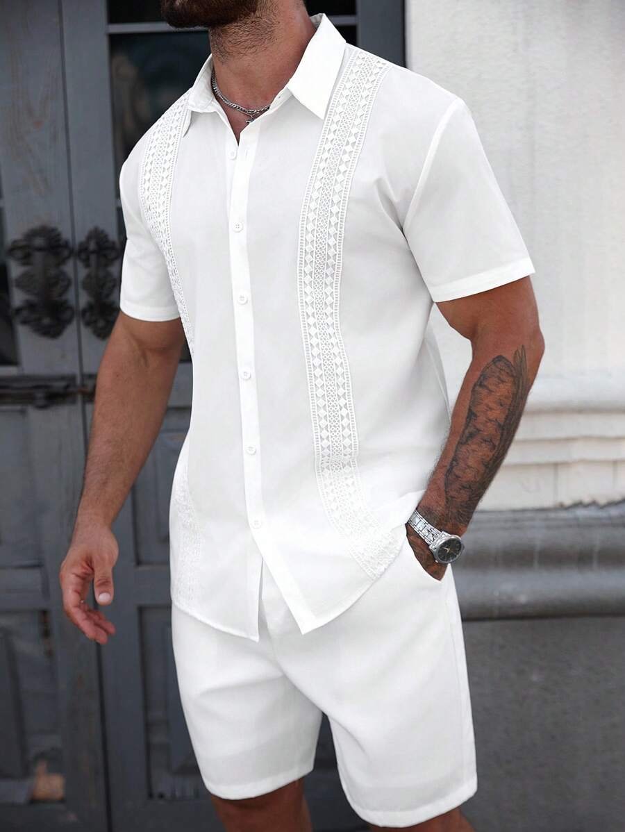 Camisa casual de hombre de verano, unicolor, con contraste de encaje