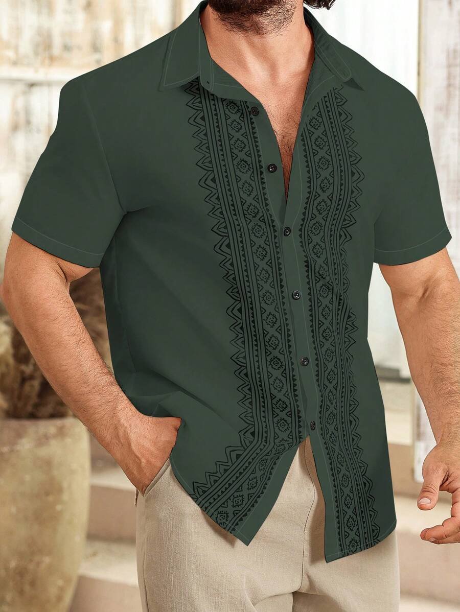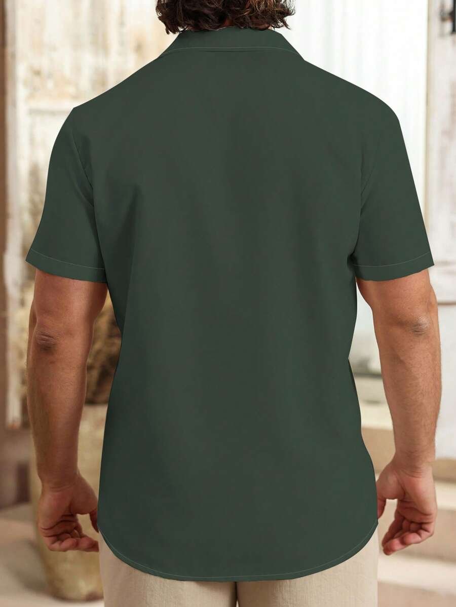 Camisa casual de manga corta unicolor con estampado para hombre
