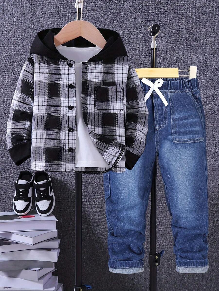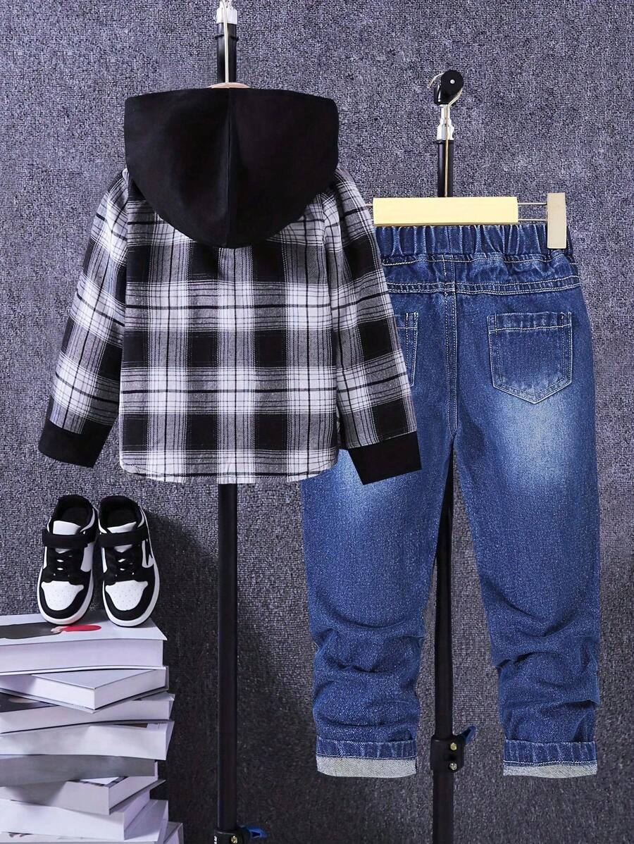 Camisa con capucha holgada y pantalones vaqueros con bolsillo lateral