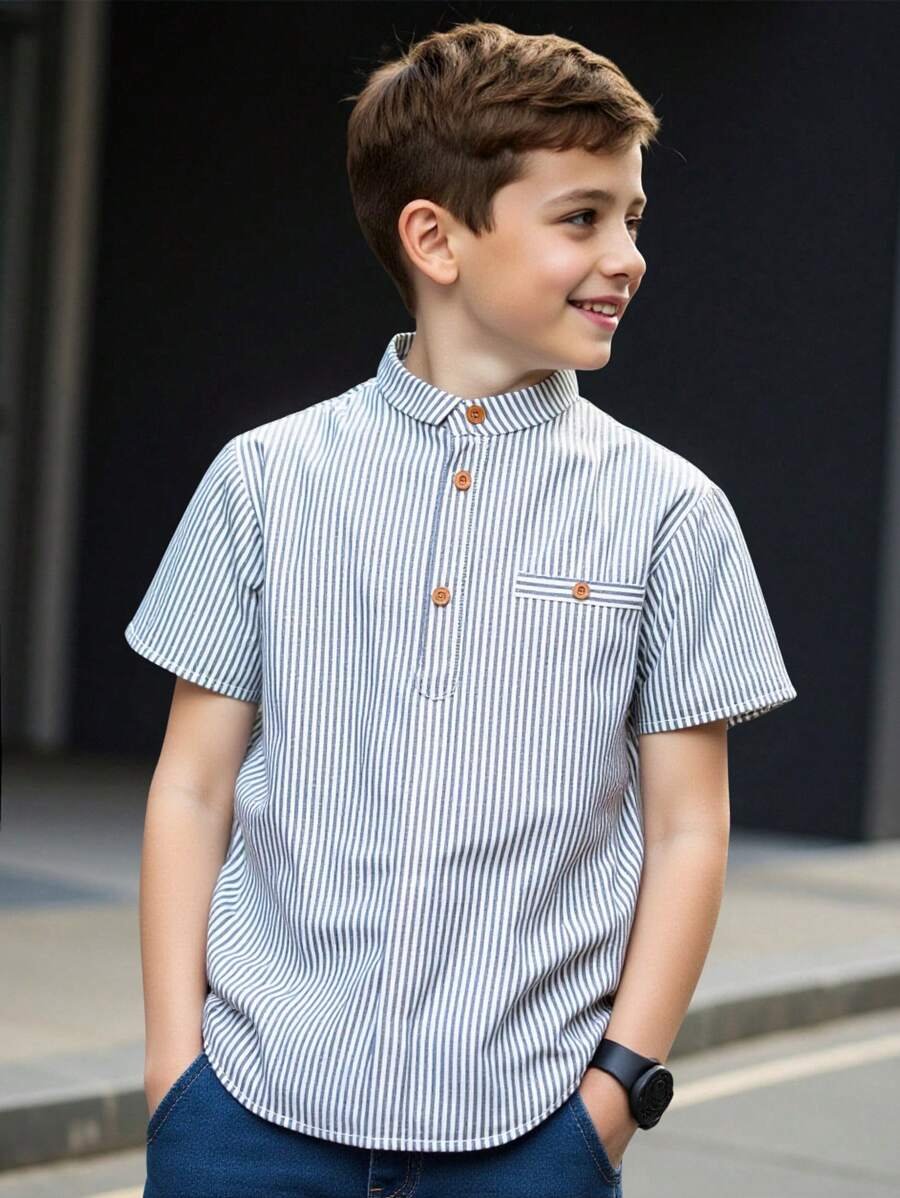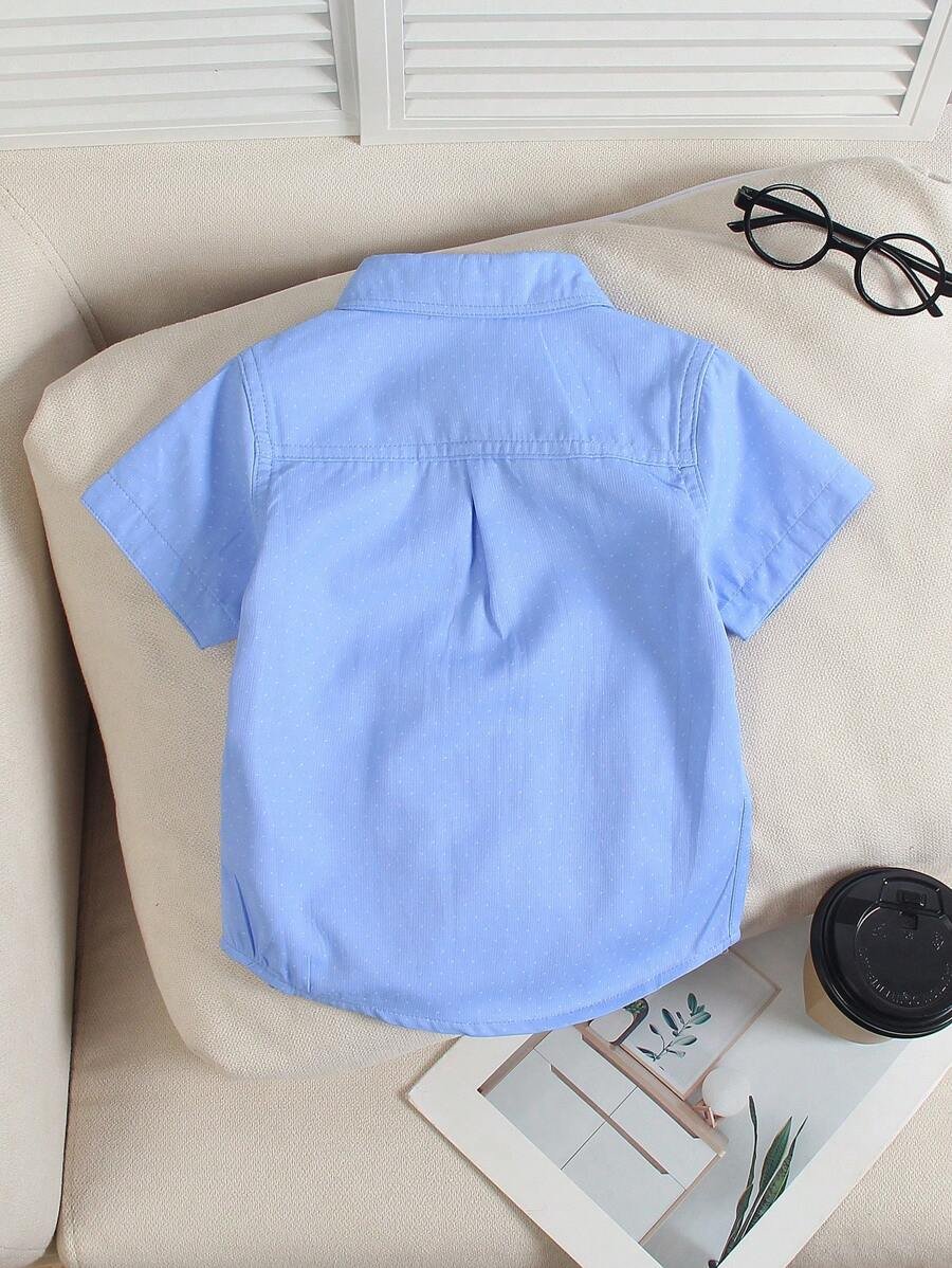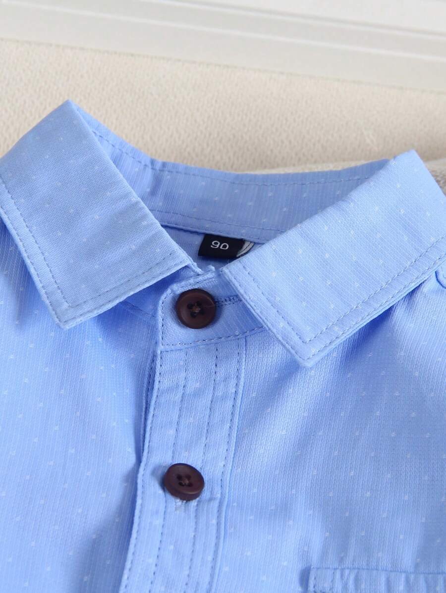 Camisa con cuello con solapa y bolsillo con estampado de lunares azules