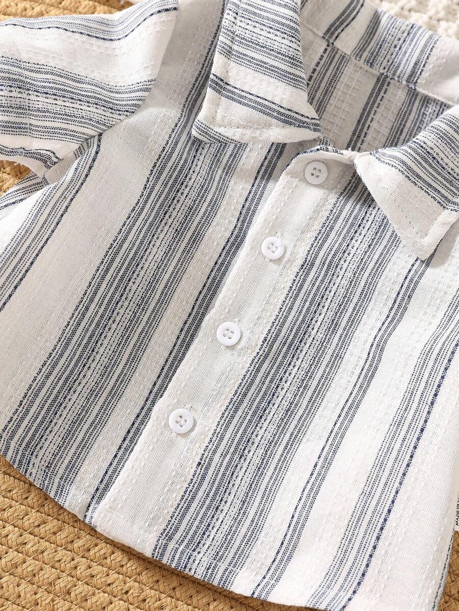 Camisa de manga corta a rayas y pantalones largos de cintura elástica