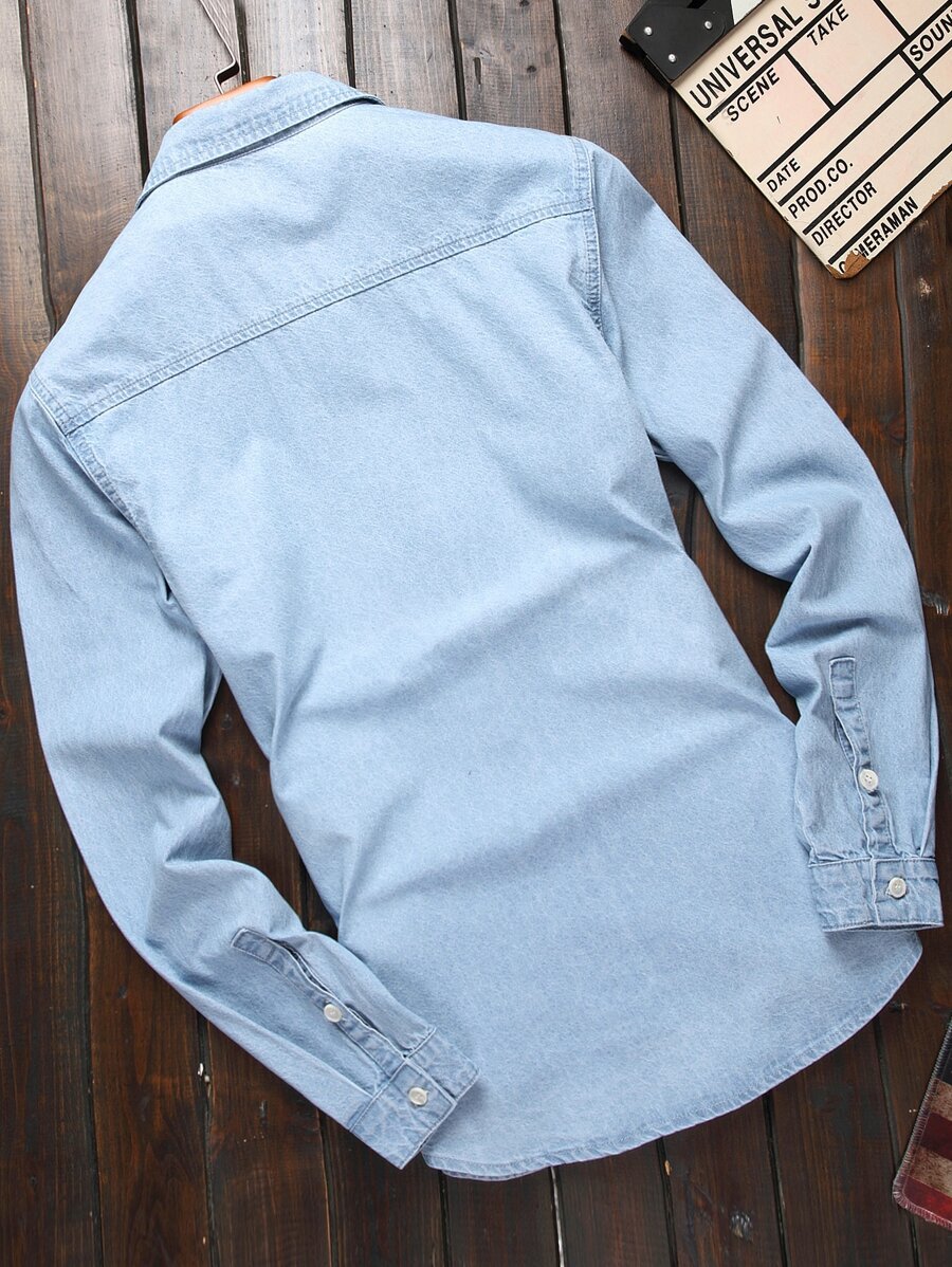 Camisa de trabajo tipo mezclilla sin estampado para hombre