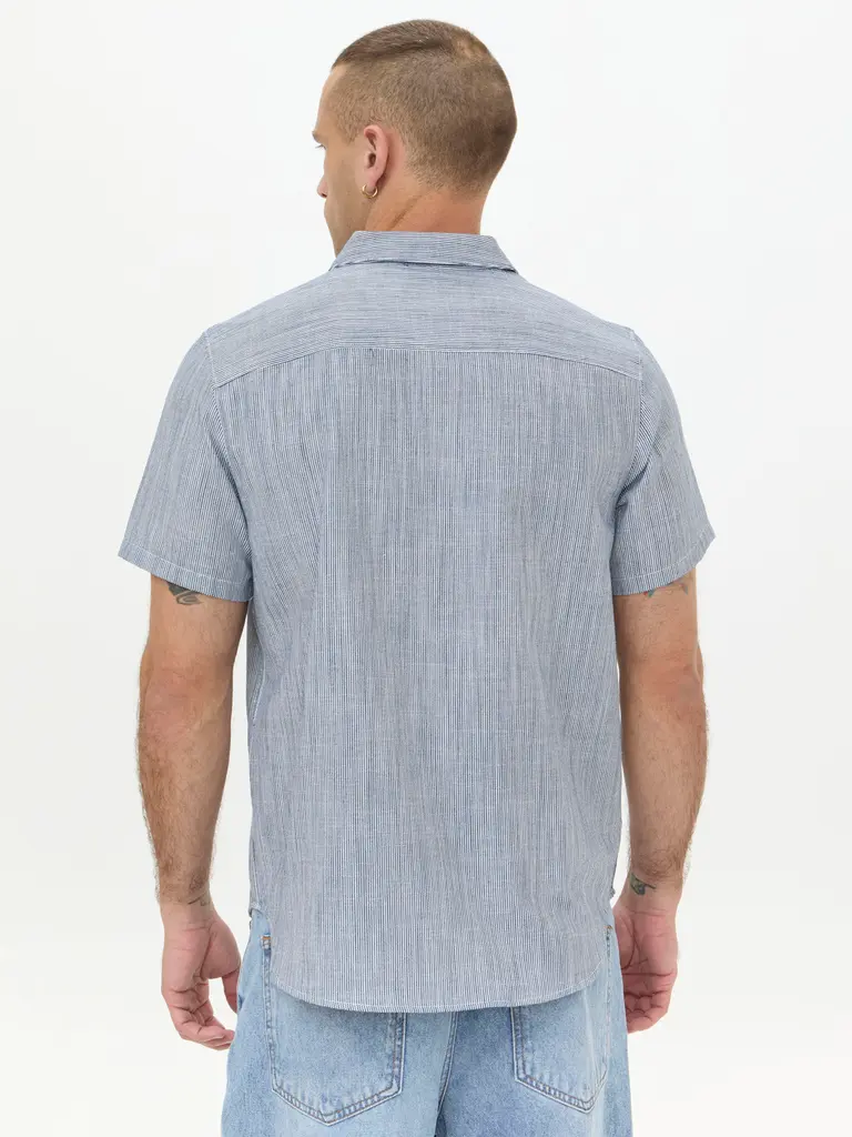 Camisa Regular a Rayas Azul