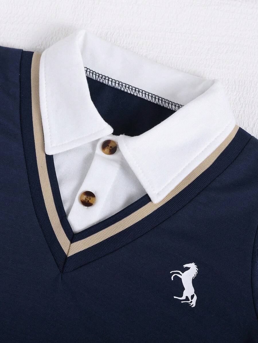 Camisa tipo polo de manga larga con estampado y pantalón casual