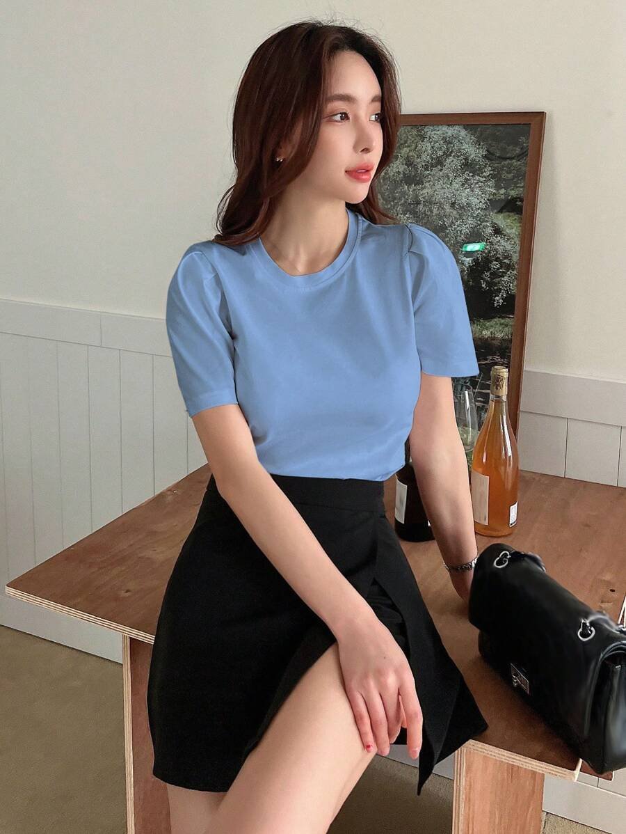 Camiseta casual de manga corta de cuello redondo de unicolor
