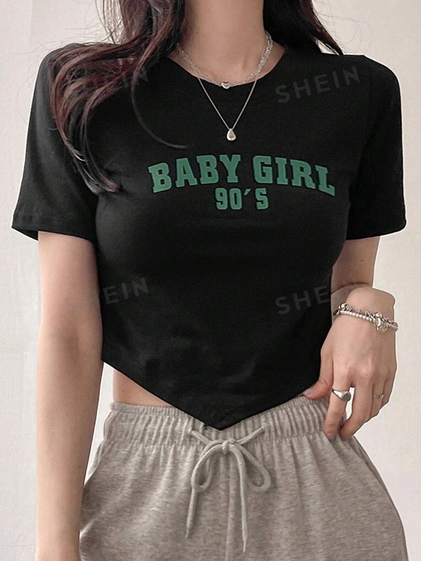 Camiseta casual de verano para mujer con cuello redondo