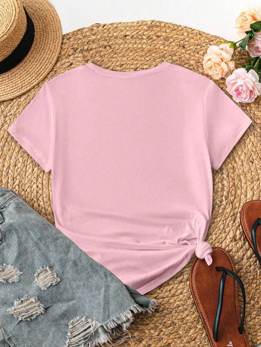 Camiseta casual versátil de mujer con cuello redondo y manga corta