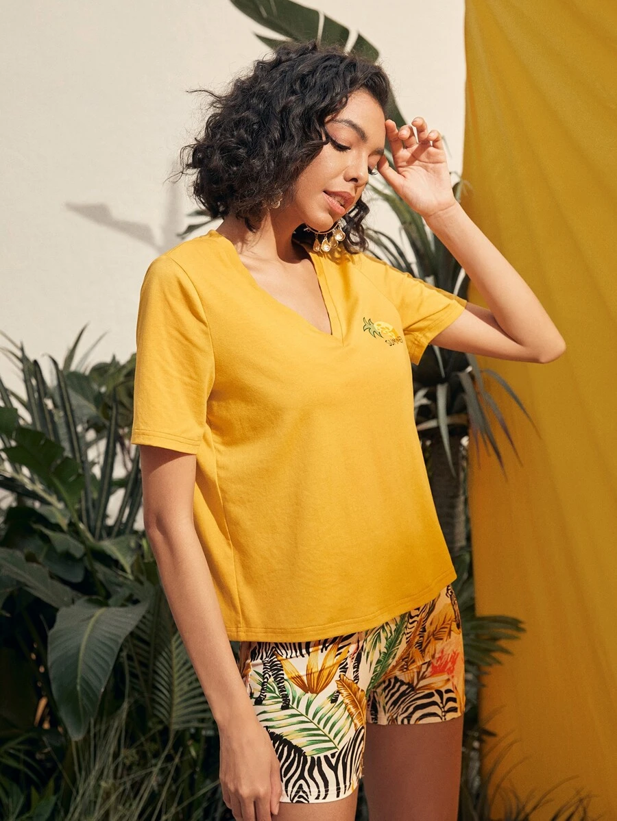 Camiseta con estampado de letra y de piña