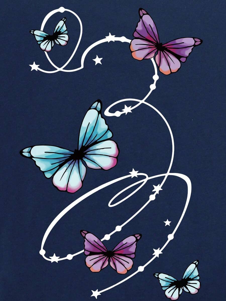 Camiseta con estampado de mariposa y diseño geométrico