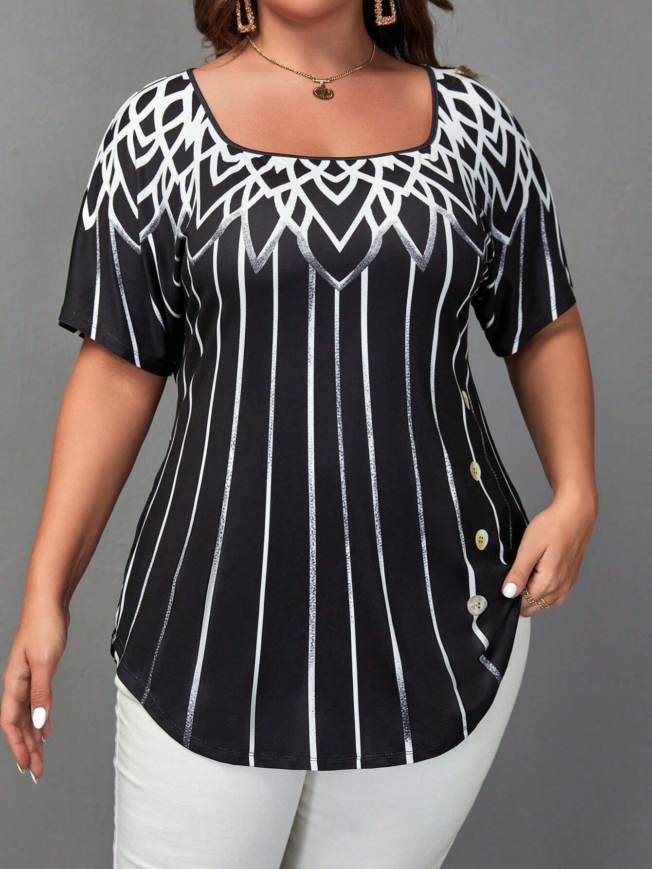Producto anterior Siguiente producto Camiseta con estampado de rayas de cuello cuadrado SKU: sz2305123930931331 Categorías: Blusas, Curvy Este producto no está disponible porque no quedan existencias. Descripción Descripción