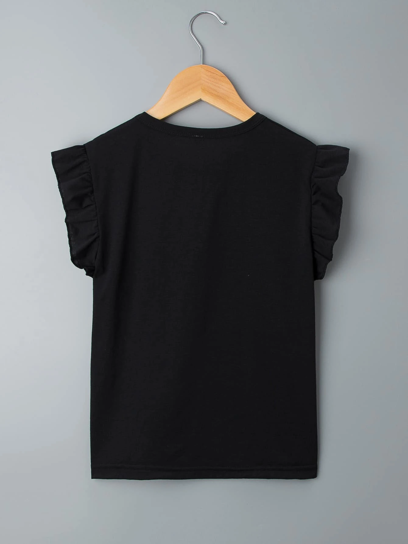 Camiseta con fruncido con estampado de letra y dibujos animados